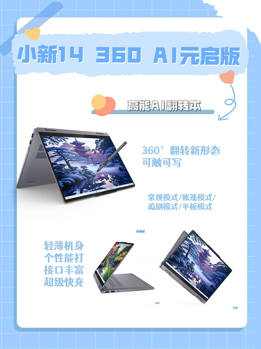 还有颠覆性的产品联想小新 14 360 AI元启版。