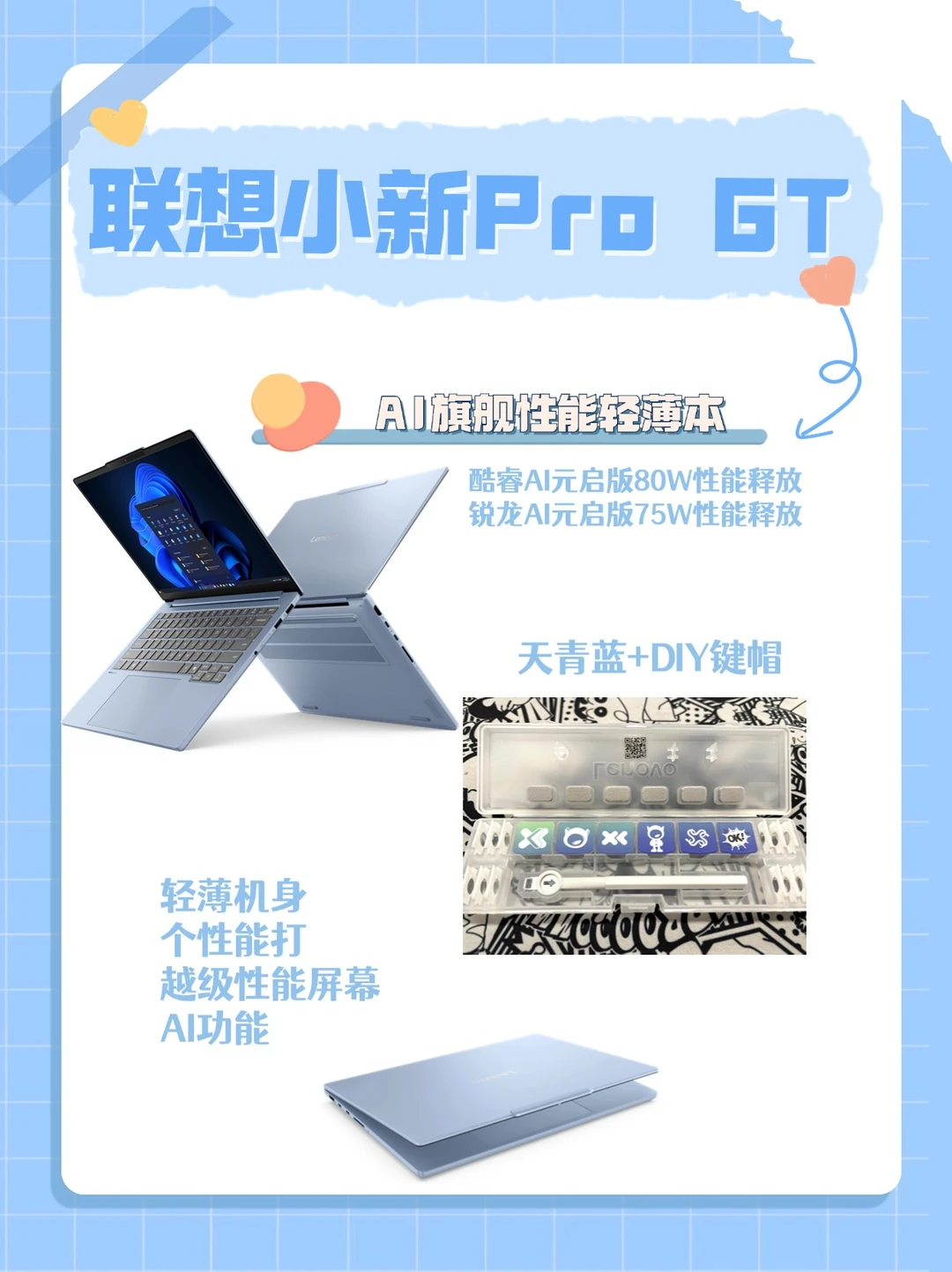 联想小新Pro 14 GT AI元启版有了天青蓝的新配色,清新个性,还能DIY键帽!