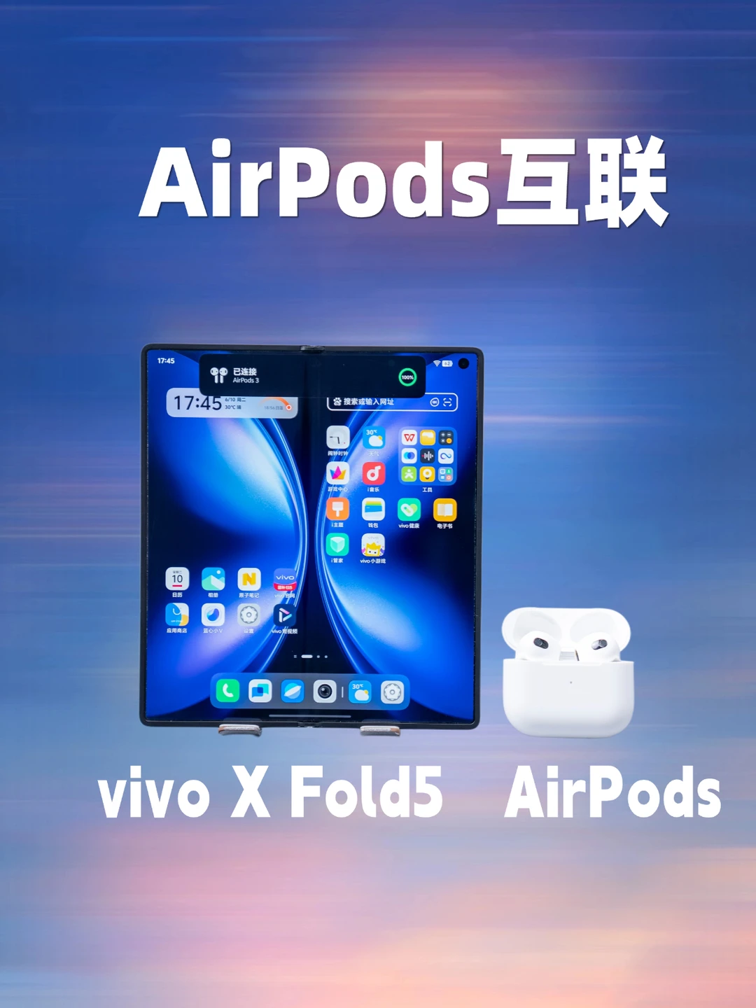 🎧vivo X Fold5与AirPods连接有专属动画,支持vivo空间音频,还能一键查找耳机,还原苹果生态的原生丝滑。