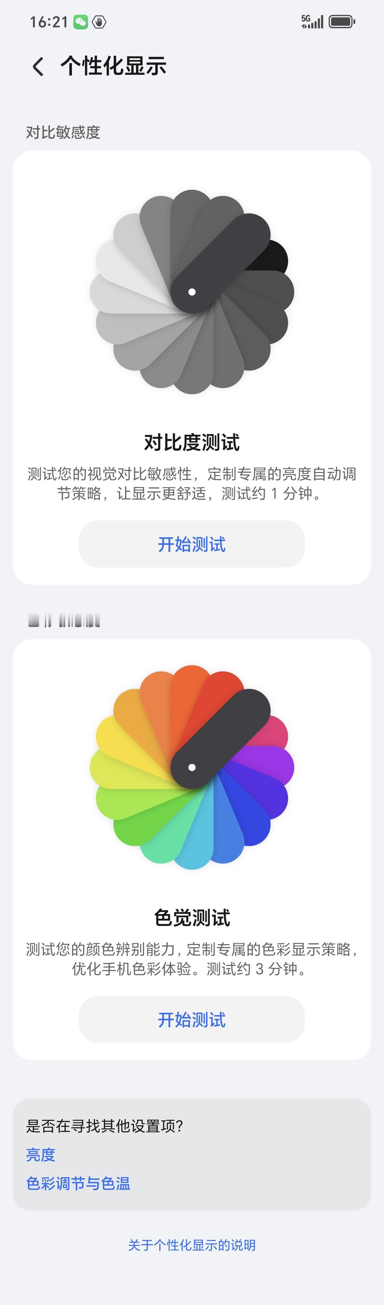 各位荣耀手机用户,您平时使用哪种屏幕色彩模式——标准、鲜艳,还是专业自定义? 我今天发现,系统支持视觉敏感度测试,可根据测试结果自动调节色域与色温,生成个人专属的护眼色彩方案。