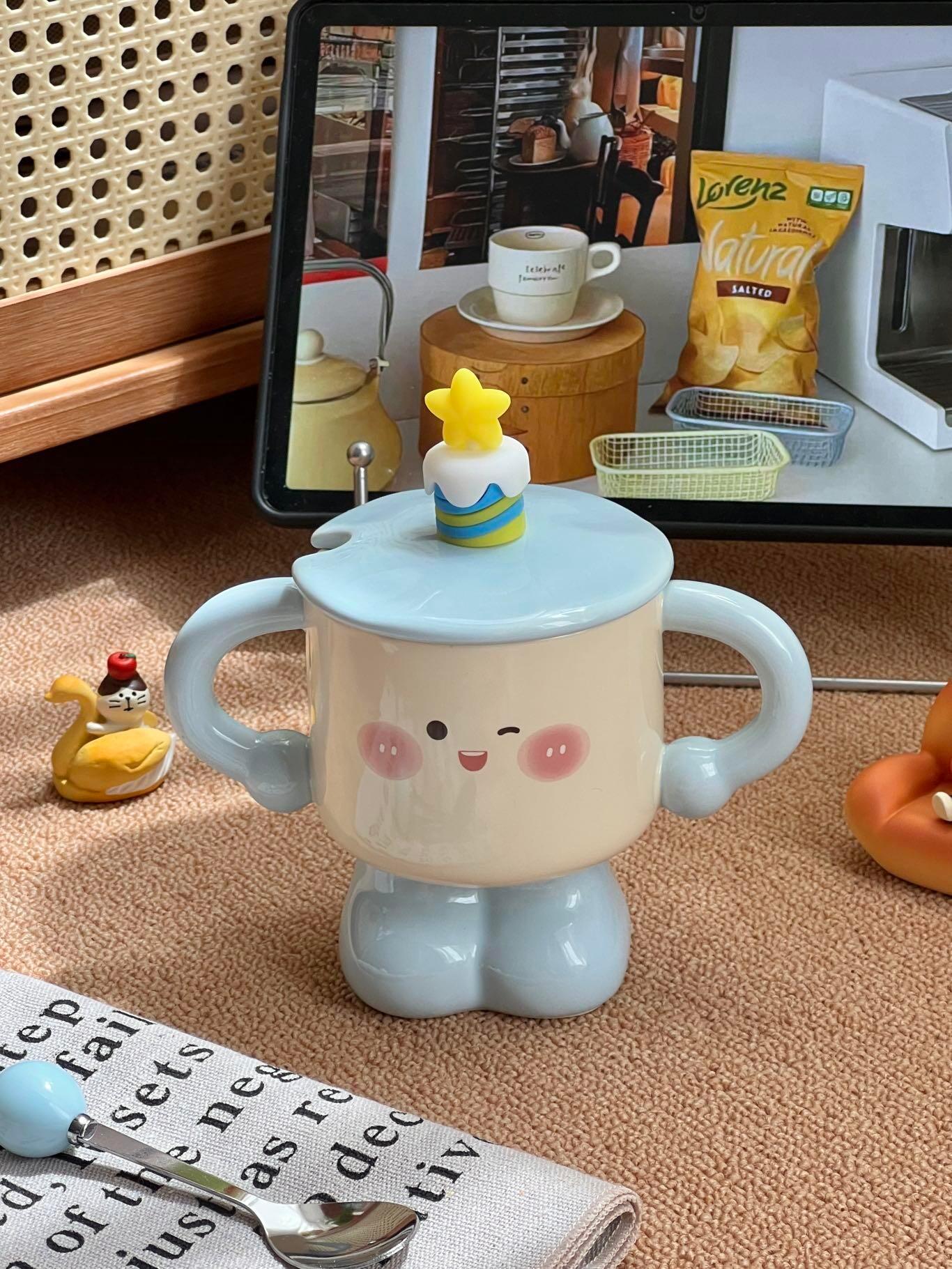 被这蛋糕造型杯子萌化啦!蛋糕造型童趣满满,杯身的表情萌到犯规,看见第一眼就被它可爱的造型治愈了~蓝色的把手和勺子,设计感十足,握着舒服,用勺子也超方便,用它喝水都变得更快乐~