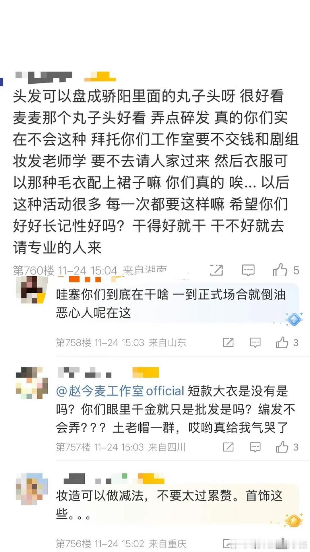 赵今麦粉丝喊话工作室要求造型团队提高审美
