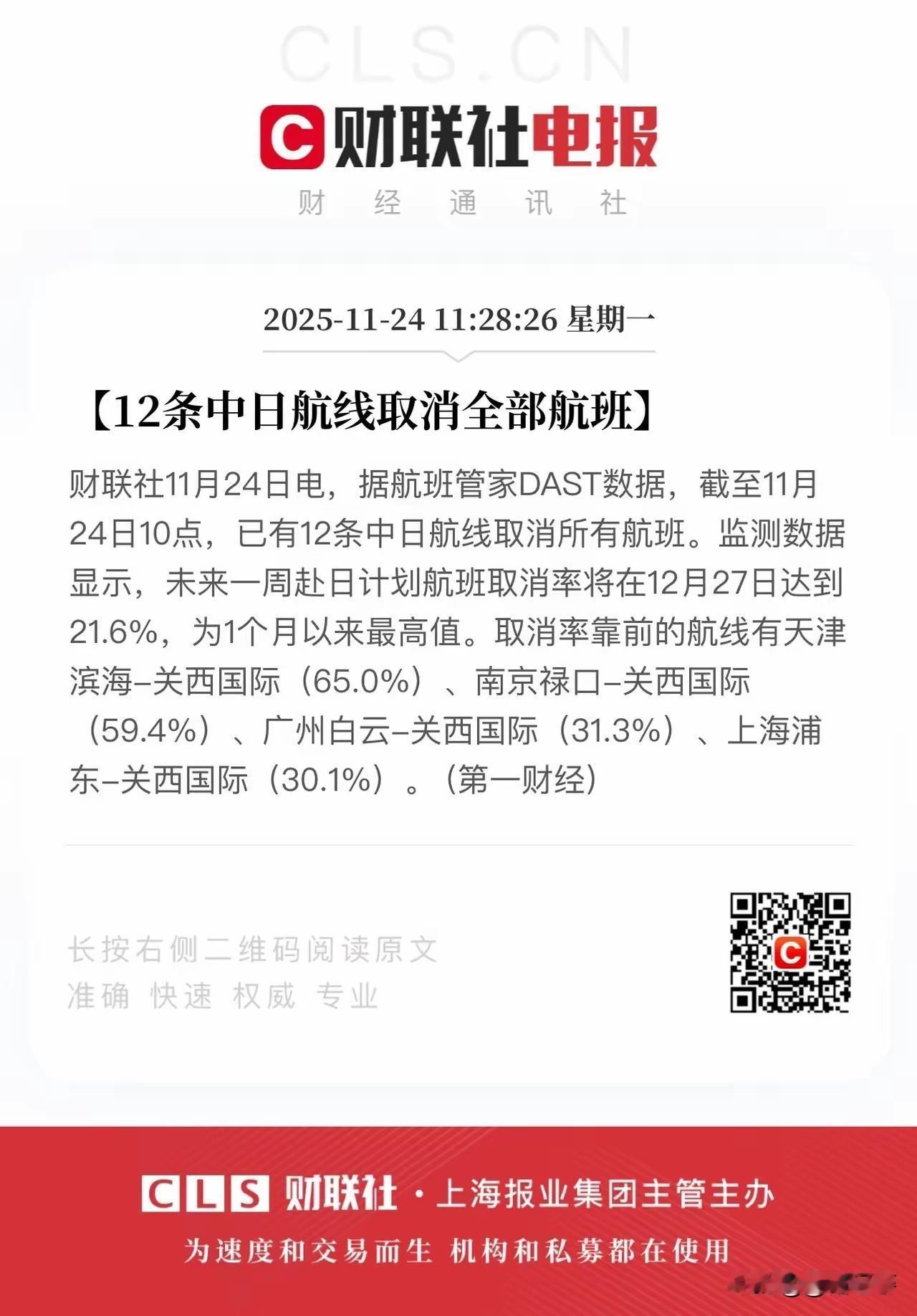 取消航线,彻底断了赴日本旅游的念头,不然部分国人还是我行我素,依然到日本旅游。 有些人觉悟就是不高啊!不听国家号召,不不按国家意志办事,这可把政府急坏了,于是取消航班,看你怎么飞过去?