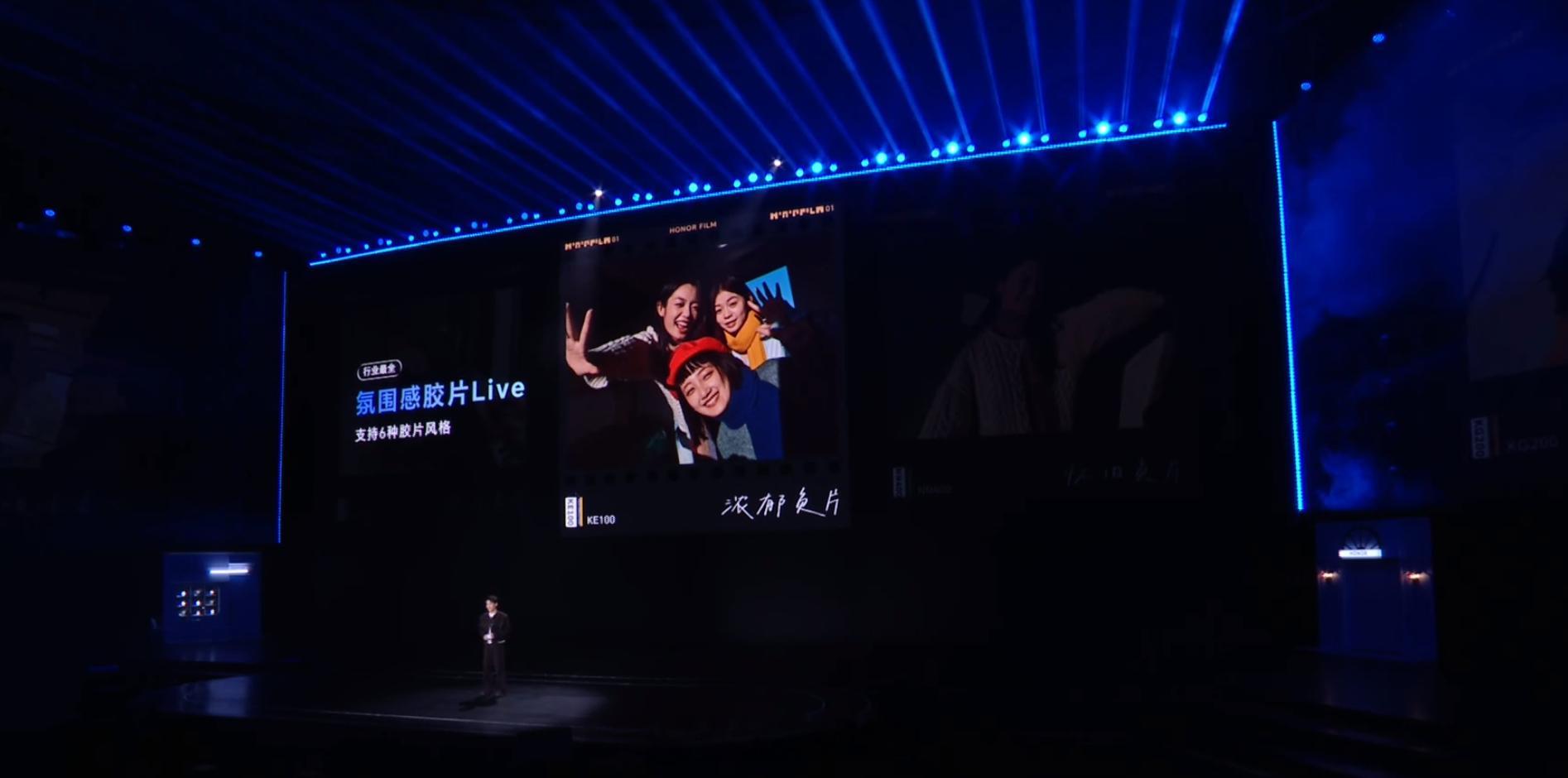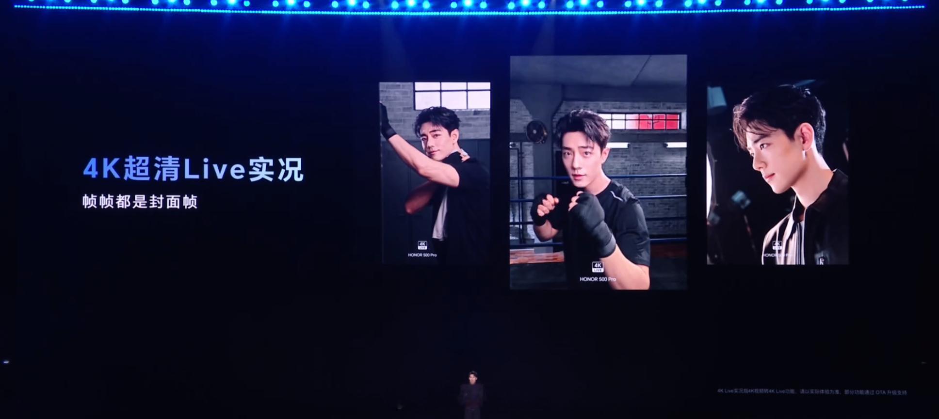 实况玩法挺多的,荣耀 500 系列行业首发破框而出 Live 特效,支持前后置 Live 人像美颜/虚化,4K 超清 Live。