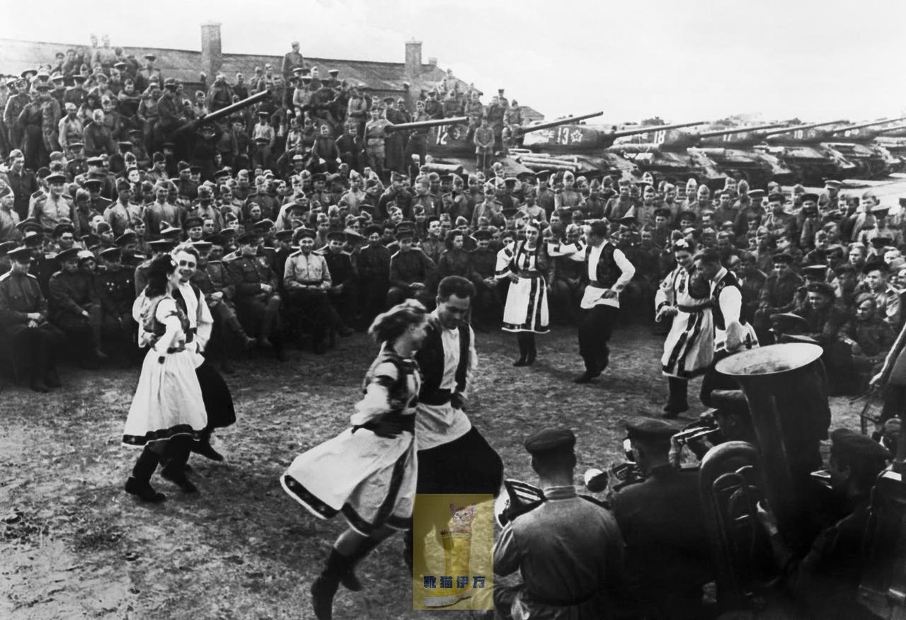 [呲牙] “接着奏乐,接着舞”——1944年,一支文工队在前线为苏军官兵表演歌舞。画面背景中有一排坦克。 文工队是二战期间,苏联组织的由演员、音乐家等组成的表演团体,专门赴前线为士兵提供娱乐,以鼓舞士气。这些表演通常包括歌曲、舞蹈和戏剧等。通常情况下,这样的前线表演能有效提升士气、缓解士兵的战斗压力。 [呲牙] 那么,现在问题来了——请问:背景中坦克主炮口径是多少毫米(参见图2)?