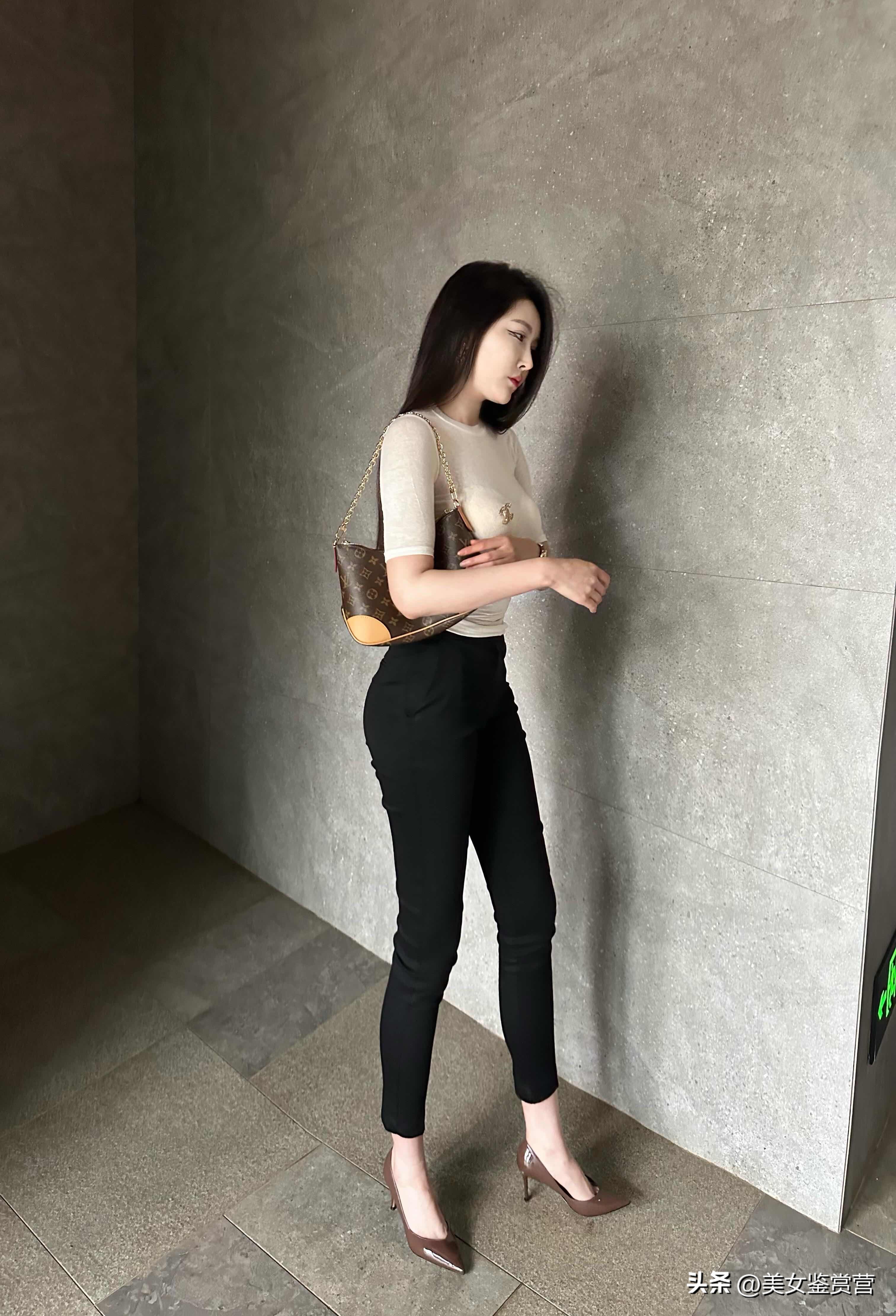 她站在浅灰色的墙面前,简约的空间衬出一身穿搭的精致。米白色的半袖针织衫,胸前的金属装饰是低调的亮点,与手腕的腕表呼应。黑色的修身长裤包裹着腿部线条,让整体利落又不失温柔。裸色高跟鞋的尖头轻轻点在地面,把优雅藏在每一步的姿态里。 她双臂交叉,长发垂落,姿态带着一丝松弛的自信。背景的素净与她的穿搭相融,让整个画面都浸在一种低调又精致的都市感里。这是属于日常的优雅,也是藏在细节里的精致。 灰色系职场穿搭 高级灰色穿搭 灰色系简约穿搭 灰色减龄穿搭 灰色系职场穿搭 时尚灰色穿搭