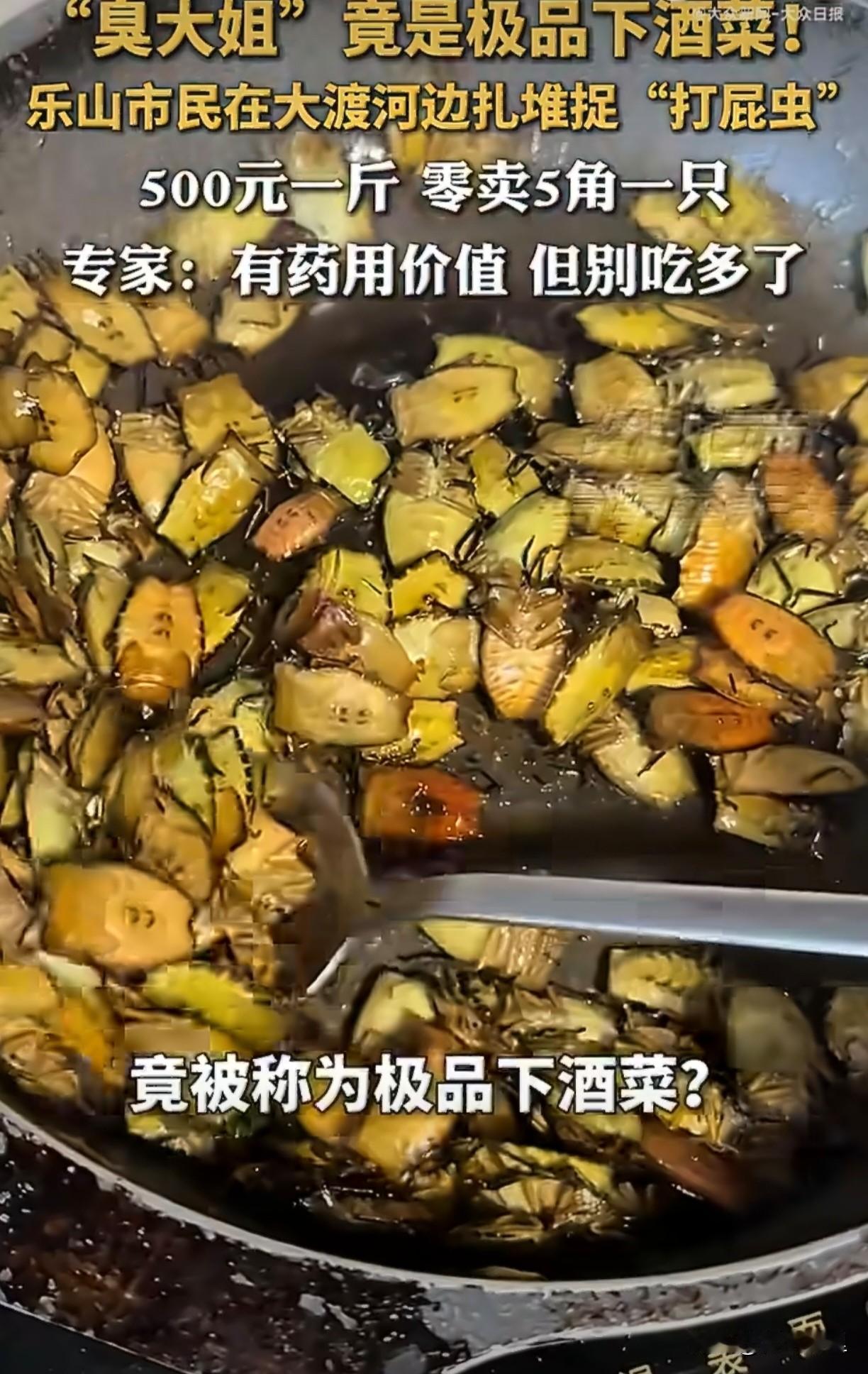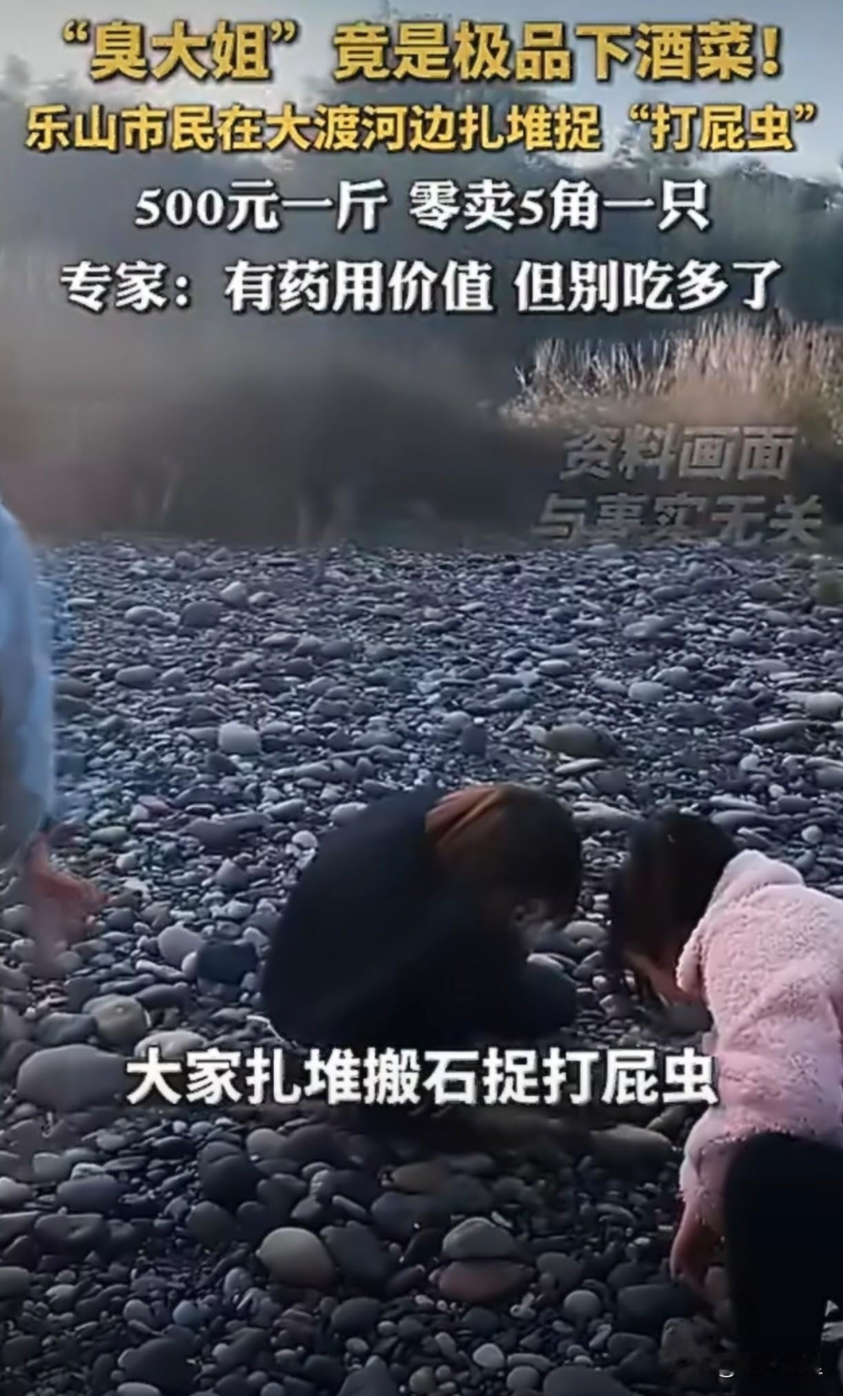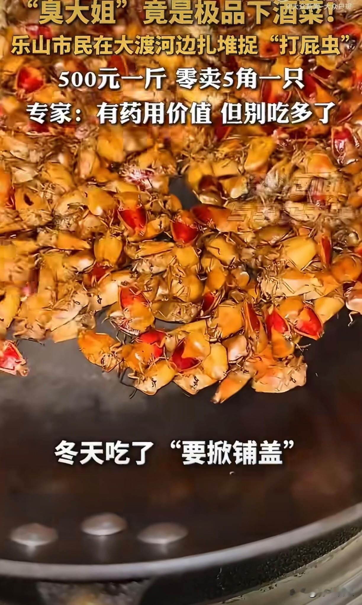 是我见识浅薄了,打屁虫也能吃吗[what]?刷到一新闻,乐山市民扎堆下河抓打屁虫,说这是一道难得的“极品下酒菜”,市场价还要5百多块钱一斤。可我记得这玩意放屁贼臭啊,闻一下都得干呕半天,沾到手上要洗好久才能把臭味去掉,居然能吃? 人类真是个天才,啥食物都敢尝试。打屁虫也很无奈:“我都进化成这样了,还逃不掉被吃的命运”[笑哭]。