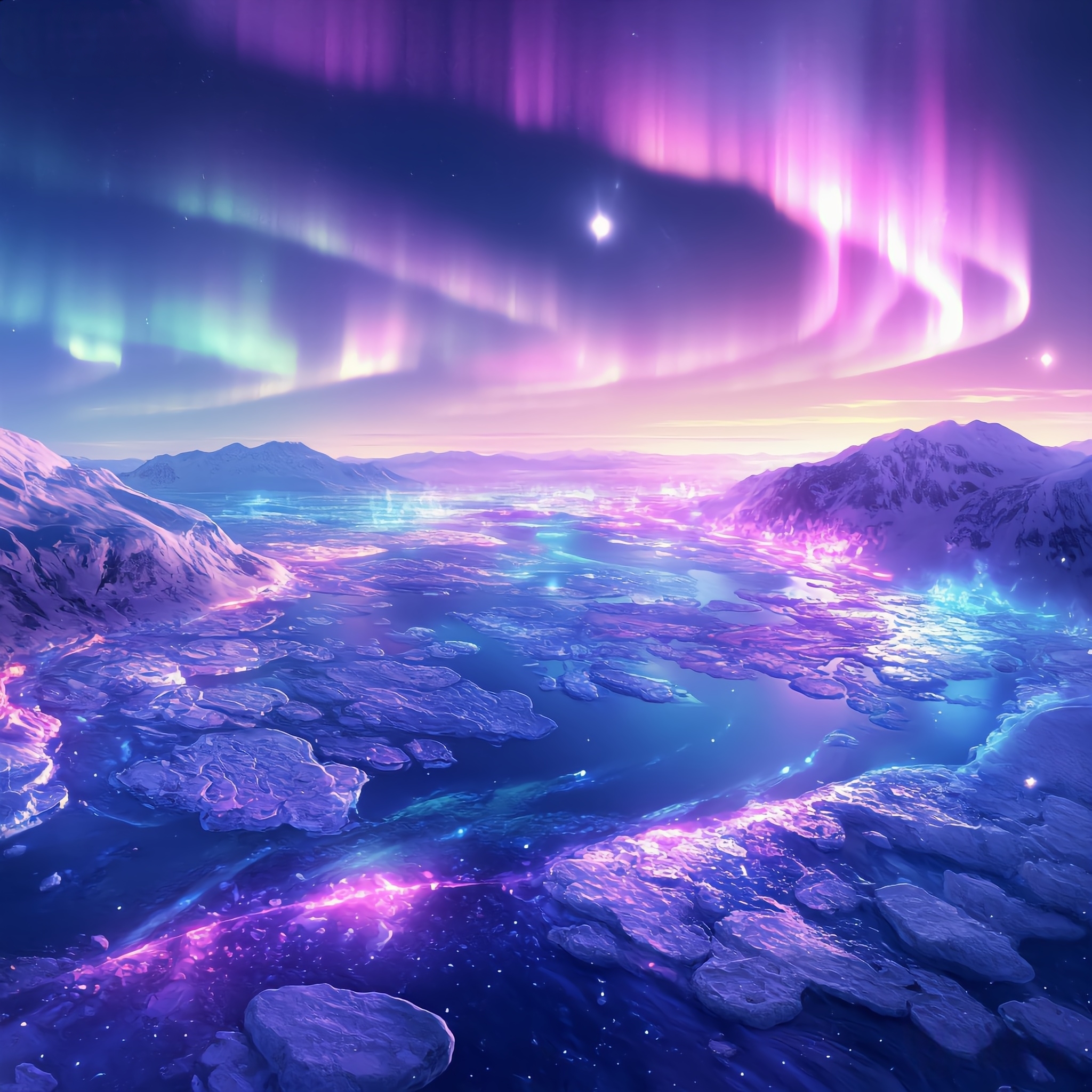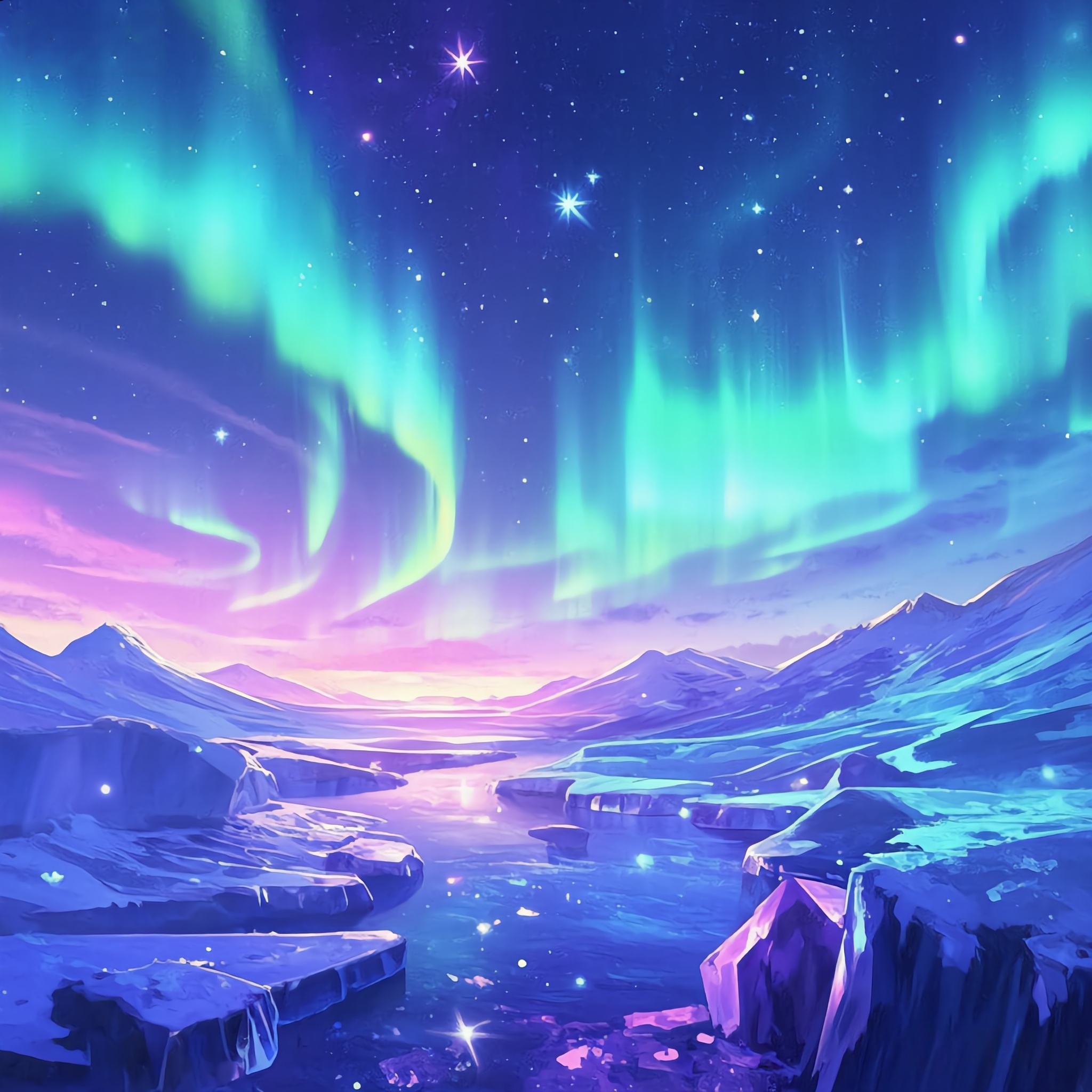 极地寒夜,冰原寂寂,唯见穹苍泼墨,挥洒千里星辉。