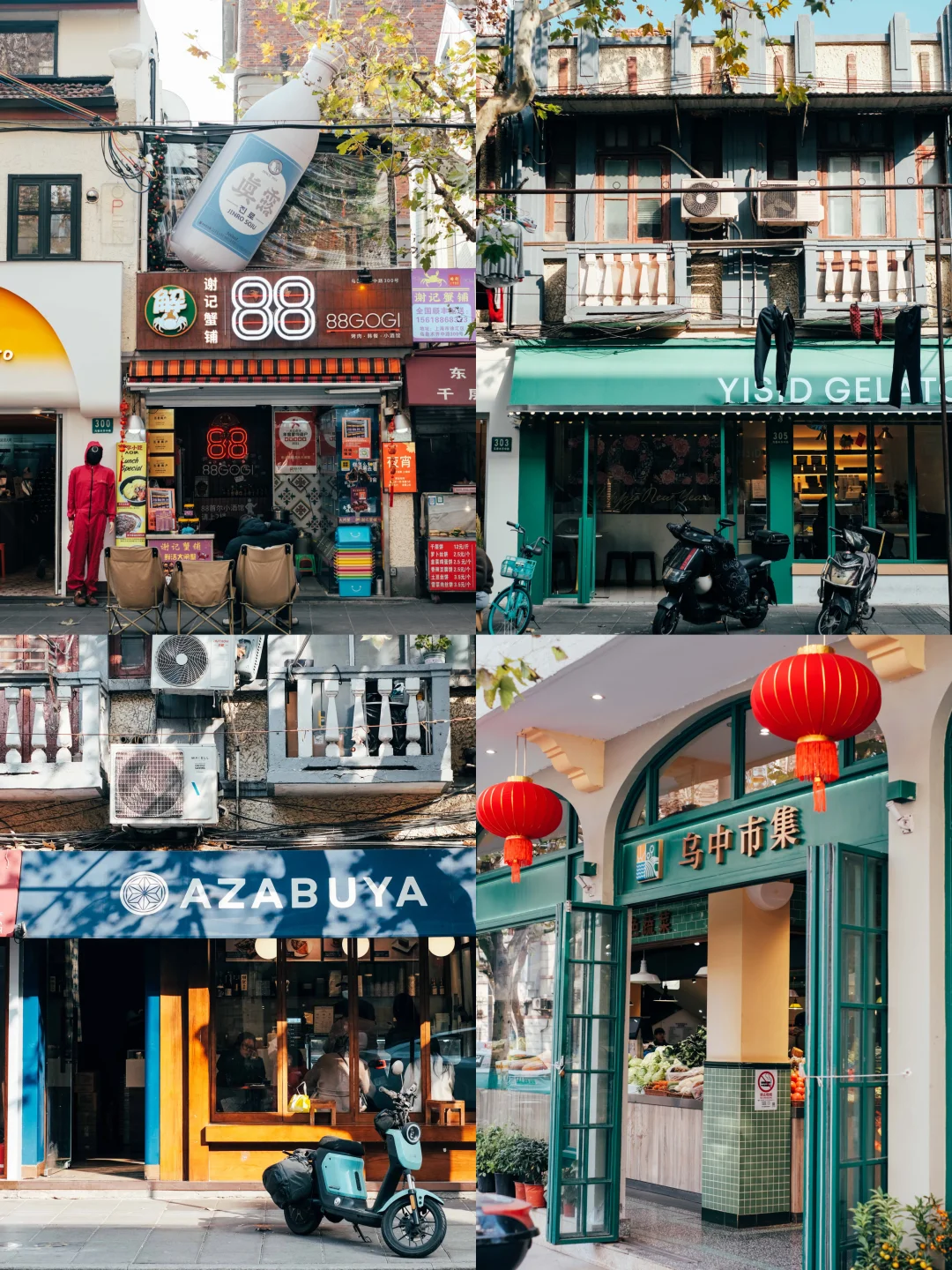 2️⃣乌鲁木齐中路:连接着五原路和安福路,有许多有趣的咖啡馆,也有充满烟火气和生活气息的小店,乌中市集也在这里,还有tagi,都值得一逛~