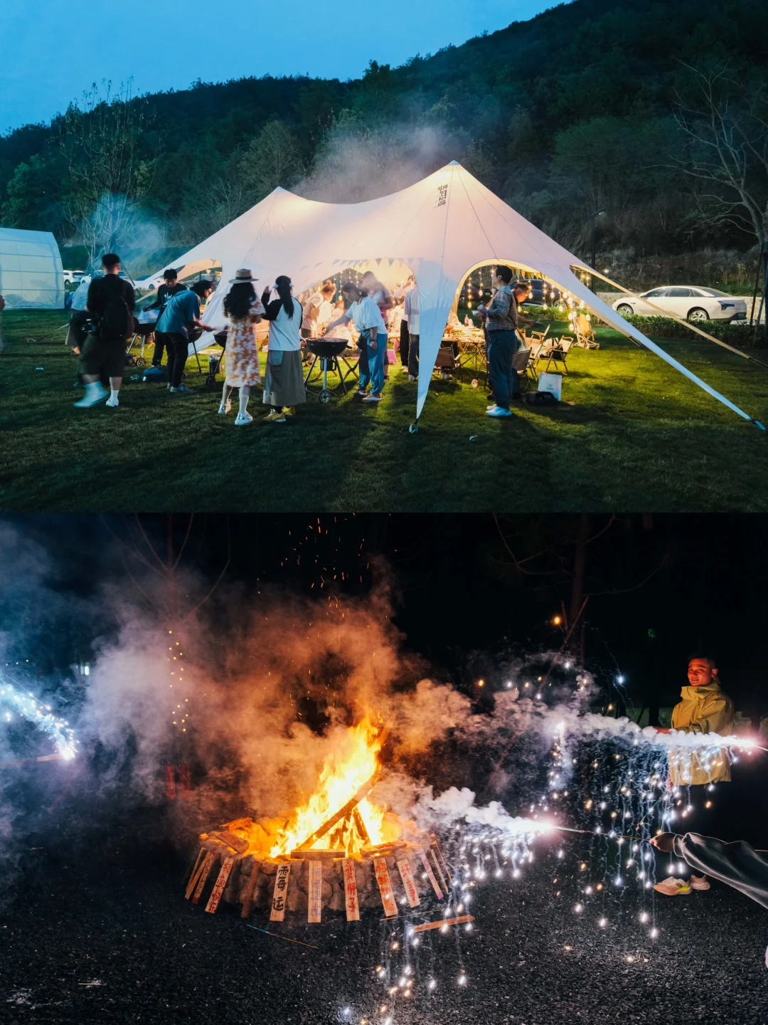 ✅篝火晚会&乐队演出&山谷野宴,晚上围着篝火,听着音乐🎵,朋友们聚在一起烧烤🔥,好chill~