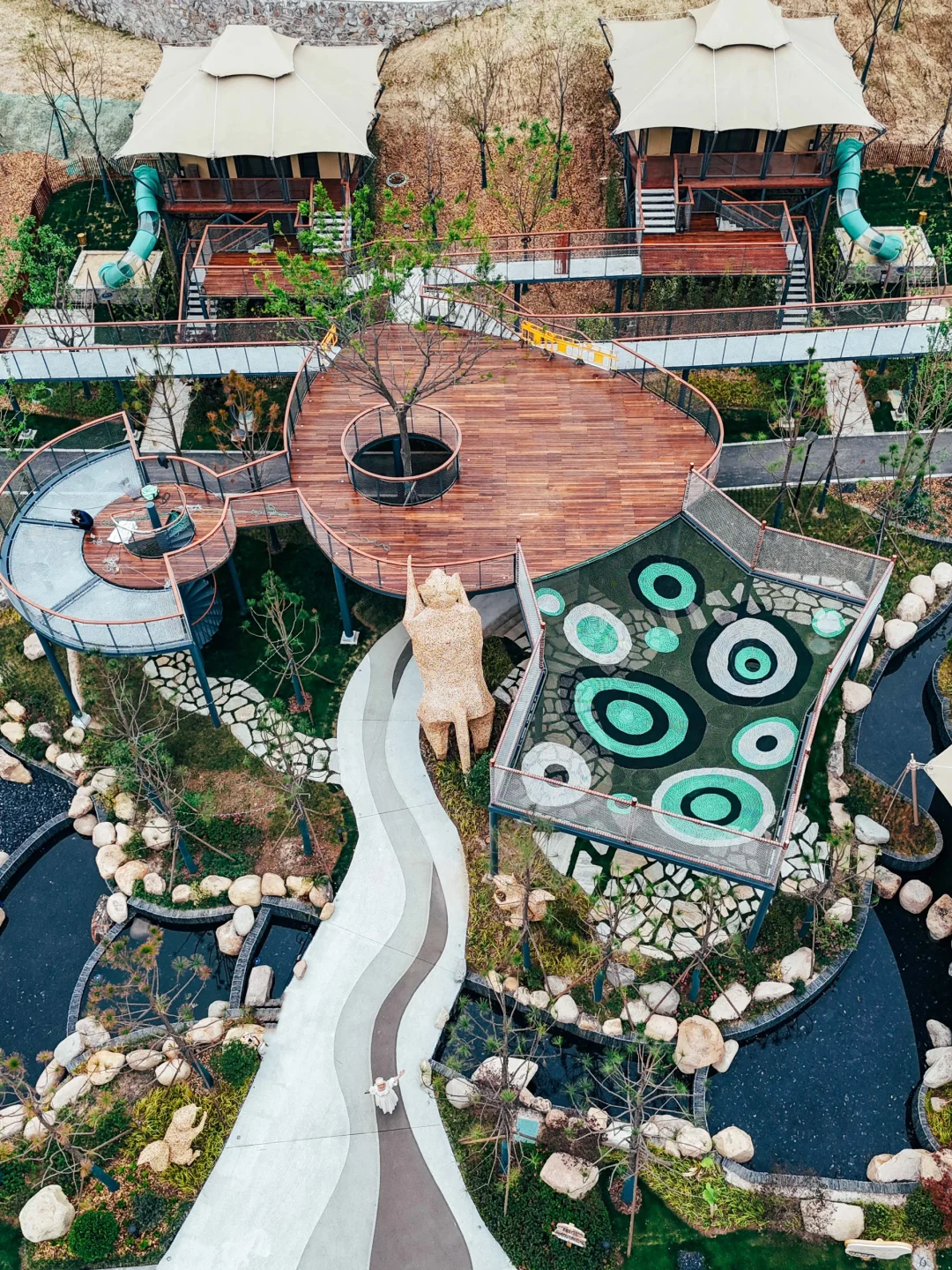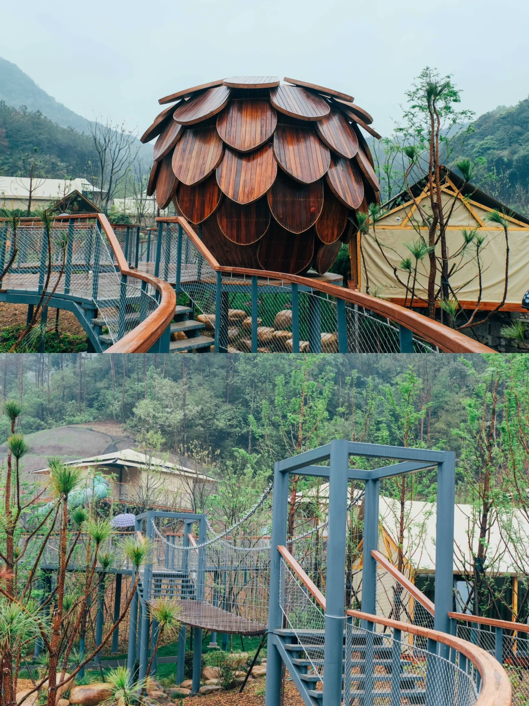 ✅帐篷区域还蛮大的,行走在帐篷云端栈道,可以到松果小屋和鸟巢观景台,特别适合吃完早饭后悠闲的散步。