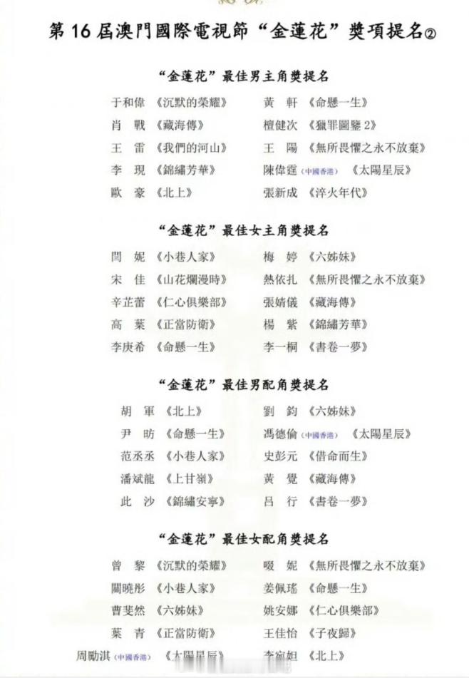 恭喜范丞丞,凭借《小巷人家》拿到澳门国际电影节金莲花奖电视奖的最佳男配角提名!电