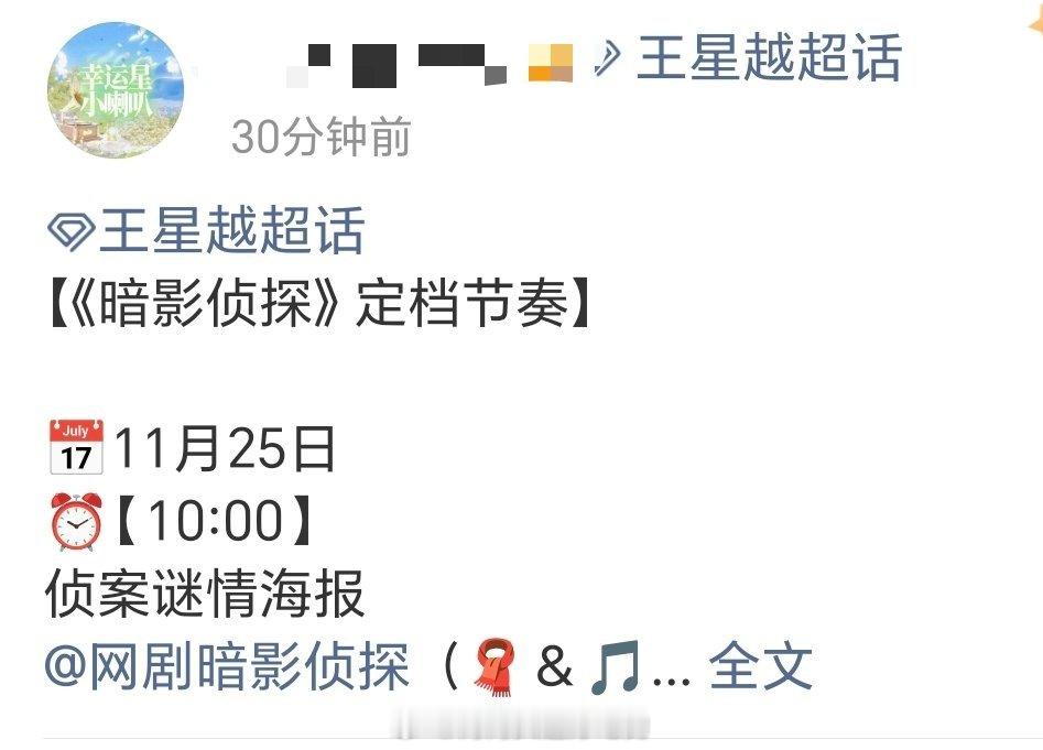 王星越《暗影侦探》明日将官宣定档!!期待星月关岑!