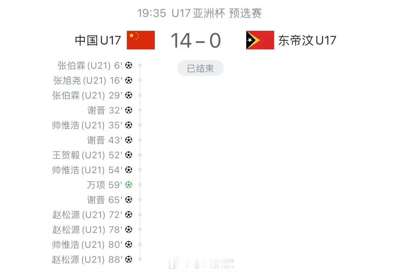 14-0!!除了拜仁的友尽赛,真的好像已经很久没见过这么大比分了。更何况还是咱们中国足球的比赛,上一次这么大比分还是2000年中国队对阵关岛队的19-0。这批U17国少足球小将,其实技术和意识都挺好的,尤其是像邝兆镭,谢晋,万项等等,这几个是很早就开始留洋,可以说小有成就的。希望成年队之后,能够更上一层楼。中国足球能不能好起来,真的要靠这些年轻人的了