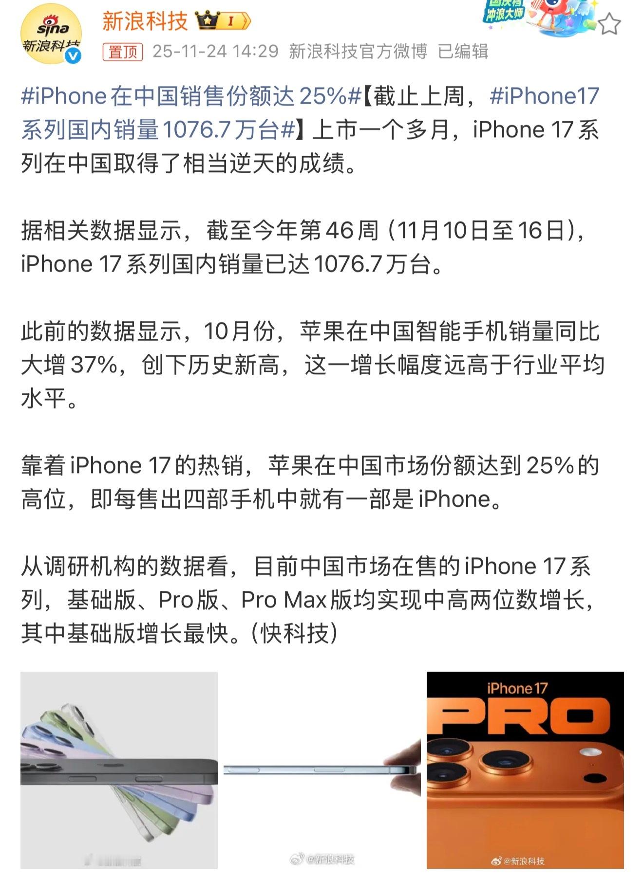 说实话,这还是没有介入AI的苹果手机,25%的销售额还是挺多的。还有,个人感觉有20%都是95后到05后之间。