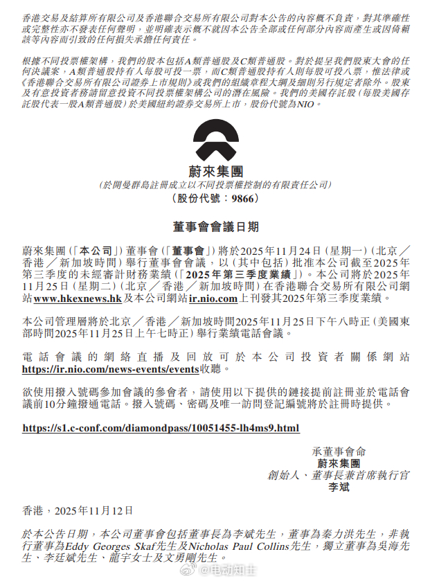 蔚来公布2025年三季度财报业绩,蔚来公司三季度交付87071辆新车,蔚3692