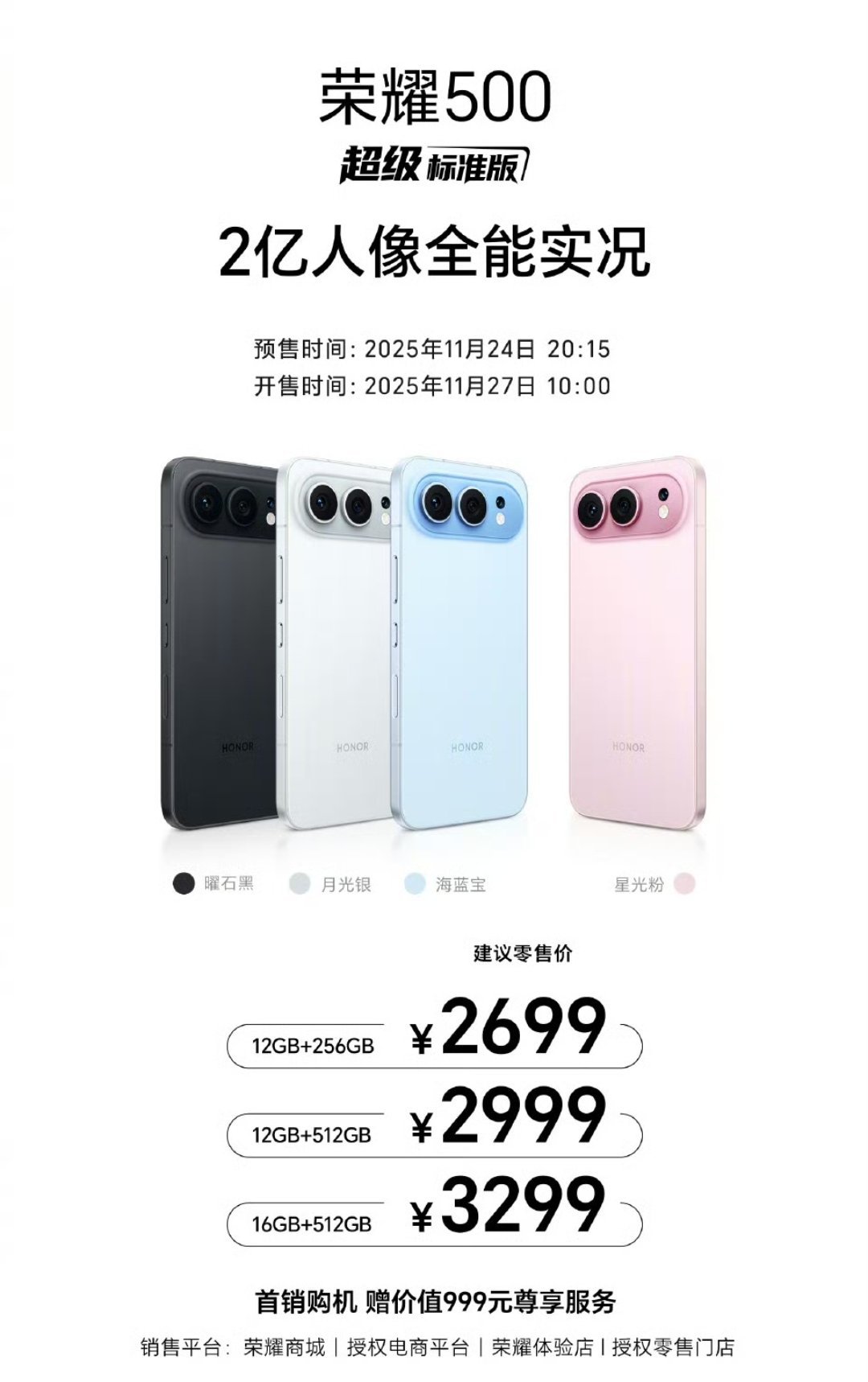 荣耀500系列价格,2699元起!荣耀500 12+256GB 2699元起!荣耀500 Pro 12+256GB 3599元起!