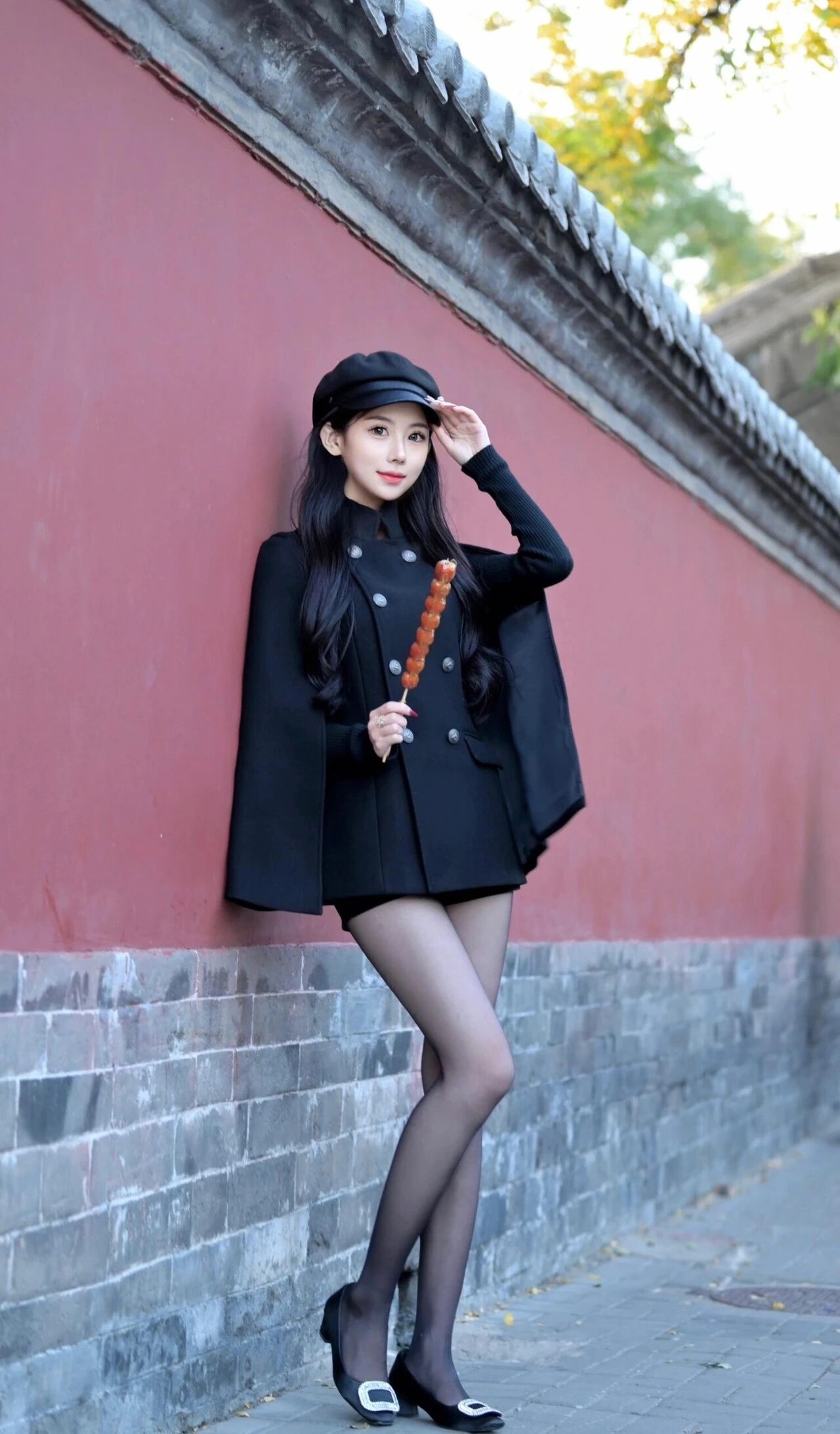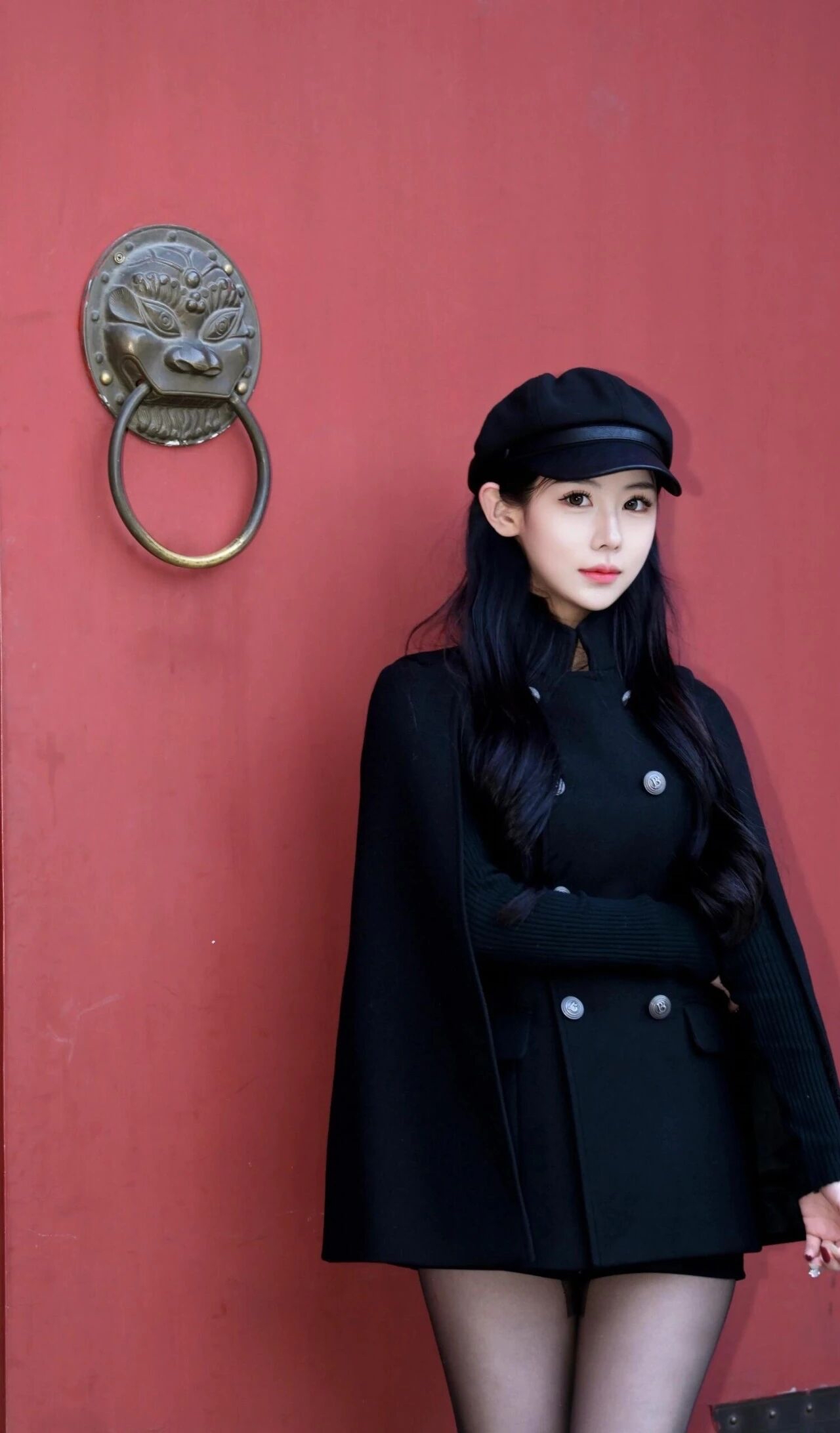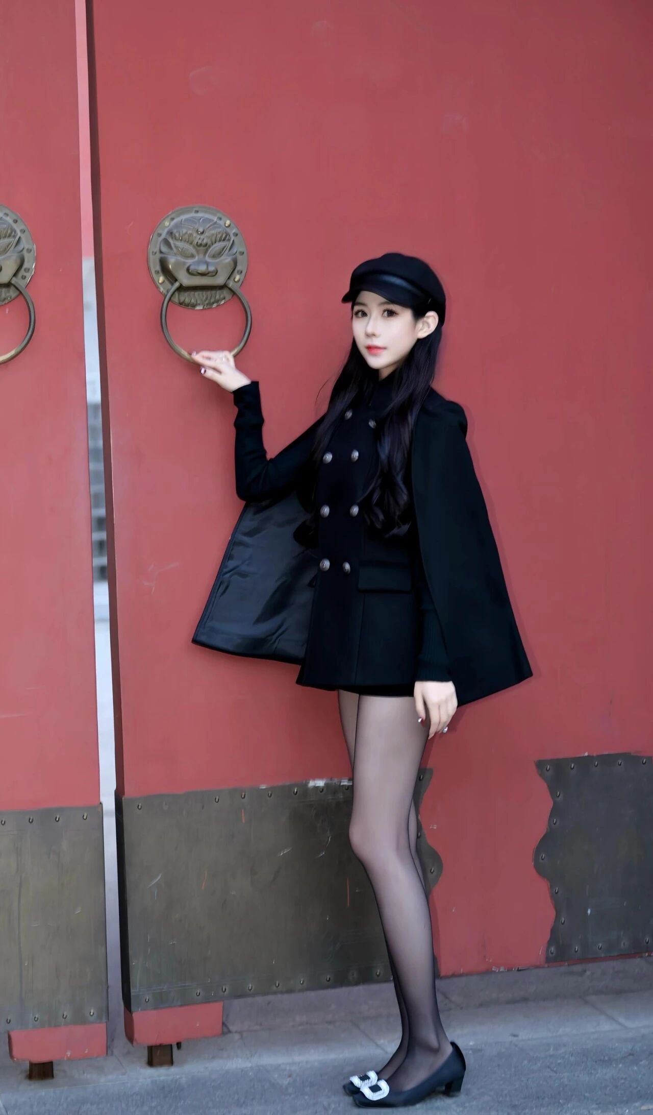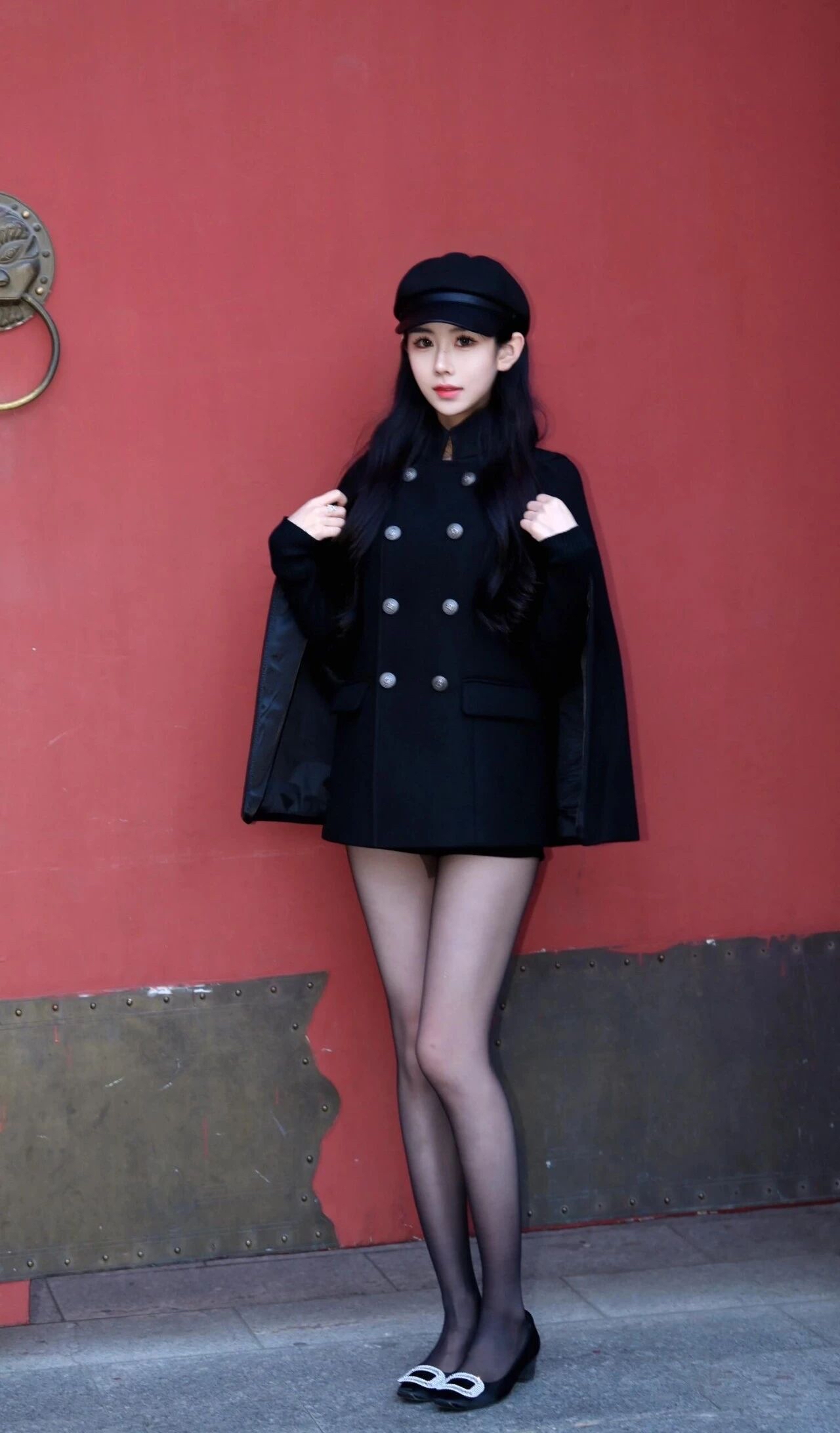 这身全黑穿搭很耐看,优雅显气质。黑色斗篷式大衣和报童帽组合,温柔不挑人。平底鞋舒服,日常穿出自在感。如果觉得单调,加条亮色围巾立马提气色,简单又出彩。这种穿法显瘦又高级,适合喜欢简约复古风格的人。性感黑丝高跟yyds 毛绒帽子穿搭 穿搭