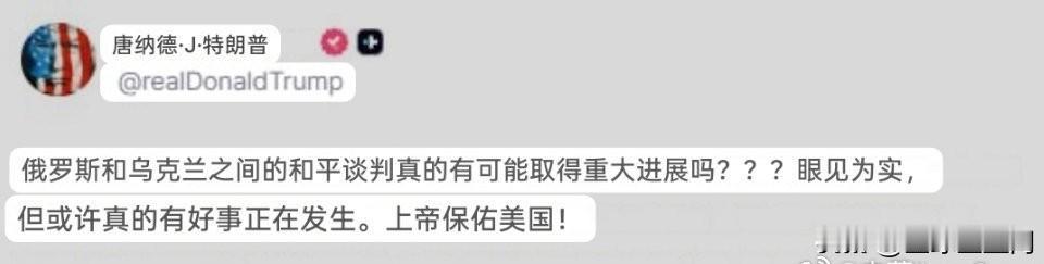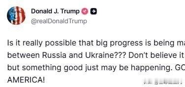 特朗普: 俄乌和平谈判真的有可能取得重大进展吗?眼见为实,但或许真的有好事正在发生。