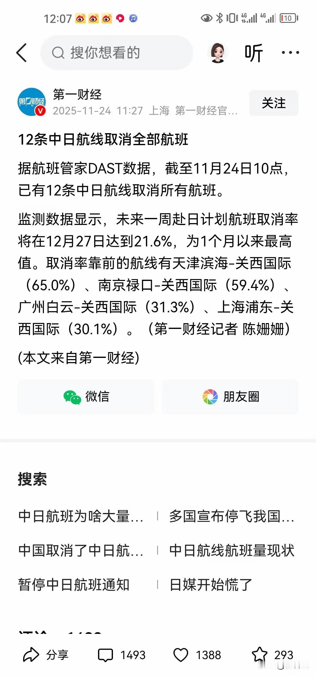 日本拒不道歉,中国对日本的反制升级了,12条中日航线取消全部航班。我个人支持国家对日本反制的升级,如果他们还是不改,我们还要继续,不能够让他们一边挑衅中国,一边又赚中国的钱,我们需要有意志向他们传达,中国人是不容挑衅的,中国人是不好欺负的,涉及到国家的主权和领土完整,不容任何的挑衅更不能侵害中国的国家利益。 日本那边现在就是一副“吃了亏还要继续嘴硬”的样子,觉得自己甩锅两句、摆个姿态就能糊弄过去。可这事儿不是过家家,牵扯到国家立场,那就不是一句“不好意思”能带过的。他们要是真敢继续跳,中国只会让他们明白什么叫代价,有来有往不是嘴上说说,是实打实的动作。 航线一停,日本旅游业先急得直叫苦,这还只是个开始。要真让中国继续往下加码,日本那点仗着中国游客撑起来的产业链,估计得立刻躺平。别看他们平时挺能装,遇到真刀真枪的压力,第一个顶不住的还是他们自己。 现在网上有些人还在那替日本说话,摆出一副“我们应该大度点”的调子,讲得跟圣人似的。真要按他们这套思路,那国家主权成了儿戏?别人把刀架你脖子上,你还得笑着让他赚你的钱?这种逻辑放谁那都说不通。一个国家最不能缺的,就是骨气和底线。 这次航线事件,其实就是一个信号:谁想在主权问题上踩线,就别指望还能继续靠中国市场赚钱。这叫规则,也是态度。对手听不懂软话,就让他们见见硬碰硬的时候,后果是什么样。 更关键的是,这件事让很多人醒了。之前总有人觉得日本怎么也算“正常国家”,经济发达、文明体面,似乎不会太离谱。可这几年他们的动作一件比一件恶心,挑衅的味道越来越重。明摆着把中国当假人,以为中国不敢动真格。 这回国家直接亮牌,让他们知道——中国不是以前的中国了。不是任你挑衅还要给你送客流、送钱包的年代了。只要你敢犯事,就有东西等着你。 说句实在的,日本要是早点认清形势、真心道歉、态度端正,事情根本不会走到今天。可他们偏要钻牛角尖,觉得自己能撑住。那既然你想赌,那就让他们赌到最后,看谁输得更惨。 很多普通人也逐渐明白一件事:国家面前没有“我喜欢去哪玩”这种小情绪,一旦涉及安全、领土、尊严,那就是所有人都必须站队。国家说有风险,那就是有风险。国家说暂停,那背后一定有深意。个人小算盘在大局面前不值一提。 日本要是继续不服,那接下来中国可能还会有新动作。不用怀疑,也不用心软。该教训的国家一天不收敛,就一天不能松开手。毕竟,我们欠先辈的教训太多,这一次该轮到他们记住了:中国的耐心不是无限的。