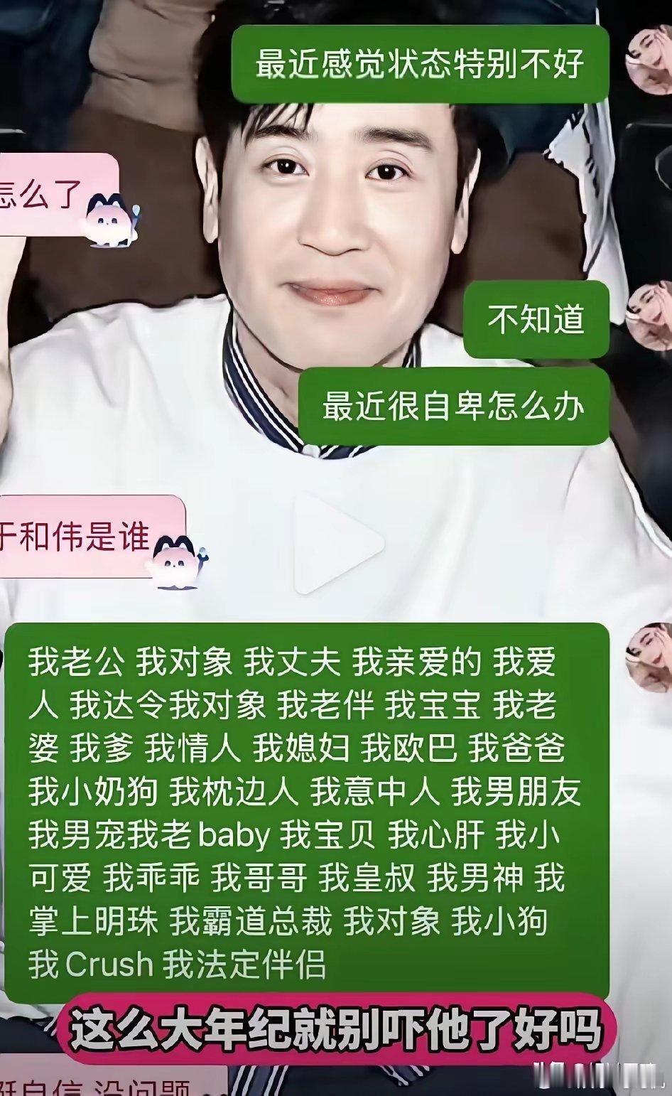 近日,一名女网友晒出了大量和于和伟的亲密照片,有在电梯里拥抱的,还有在车上手牵手的,配文更是暧昧得不行,就在不少网友以为于和伟出轨时,有于和伟的粉丝解释,称这名女网友就是一名疯狂的私生粉,照片全都是AI制作的。而这名私生还非常嚣张的晒出了自己骚扰于和伟的通话记录和短信,甚至她还找到了于和伟的家庭住址,在于和伟小区门口蹲守,可以说非常之疯狂和“变态”了。网友们看到这些内容后也都傻眼了,大家没想到54岁的于和伟居然还能有私生,虽然大家夸他是叔圈“天菜”,但粉丝们喜欢的都是他的作品和他的人品,就算叫着想嫁给他的粉丝们,也都是过过嘴瘾,没对他有什么非分之想。而这个私生看年纪把20出头的样子,还是一个小女孩,和于和伟的女儿年纪差不多,于和伟被这样一个女生骚扰应该觉得很可怕吧?