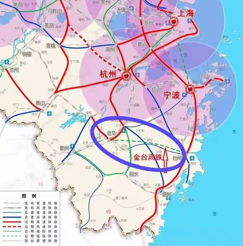 金华至台州高铁规划落地,精准填补浙中东部东西向高铁空白,破解区域交通绕行瓶颈。线路串联金义、横店、天台、三门等节点,衔接杭温、杭绍台及沿海高铁,预留跨线联络条件,构建多维联通路网。不仅缩短金华与台州时空距离,更强化四大都市区联动,促进人才、资金等要素高效流动。