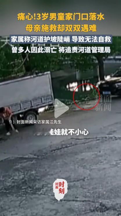 真是让人痛心!短短几十秒时间,母亲和3岁的孩子都没命了,一个家庭基本上就完了!发生在湖北洪湖的这起惨剧,值得接受的教训非常多。一是在村民居住的地方,为什么河道如此陡峭和湿滑时岸上没有护栏?二是3岁的孩子怎么能让他离开大人的视线?母亲用生命偿还了自己的错误,看到孩子掉下去赶紧下去抢救结果自己也搭了进去,实在让人太痛心了!