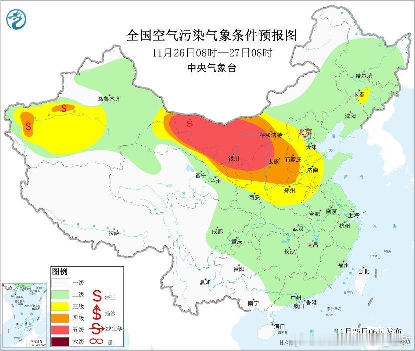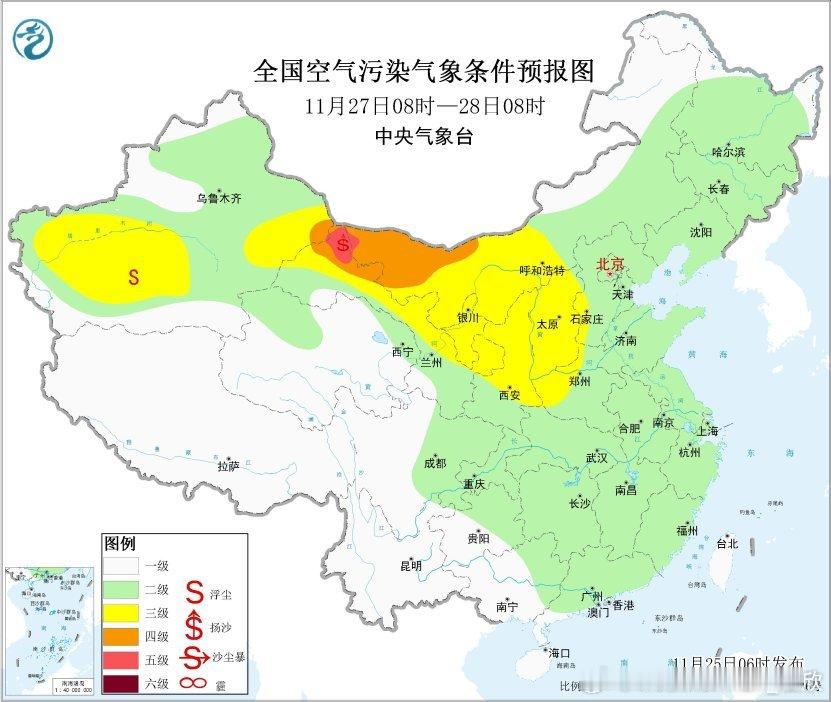 【沙尘】昨晚到今晨,辽宁、山东等地的沙尘东移南下,这轮沙尘过程基本结束。另外,吉林省吉林市,昨晚到今晨持续严重污染爆表。这应该不是沙尘导致。从PM10和PM2.5浓度看,都很高,疑似是烧秸秆导致。未来冷空气依然频繁,大风天气还会在西北地区引发沙尘,并向东南方传输,可能波及到山西河北河南等地。预计25日至27日,新疆南部、内蒙古中部、甘肃中西部、宁夏、陕西中北部等地的部分地区有扬沙或浮尘天气,局地有沙尘暴。