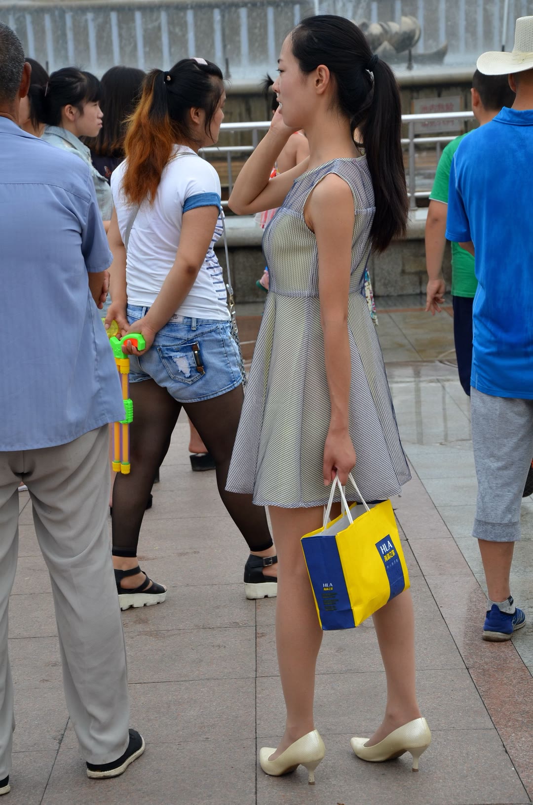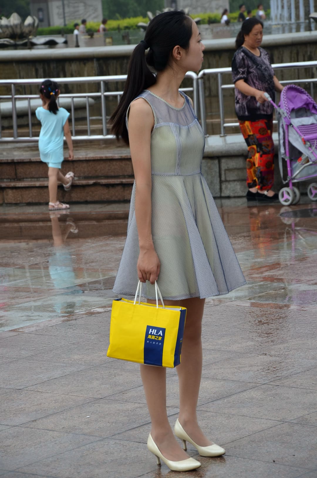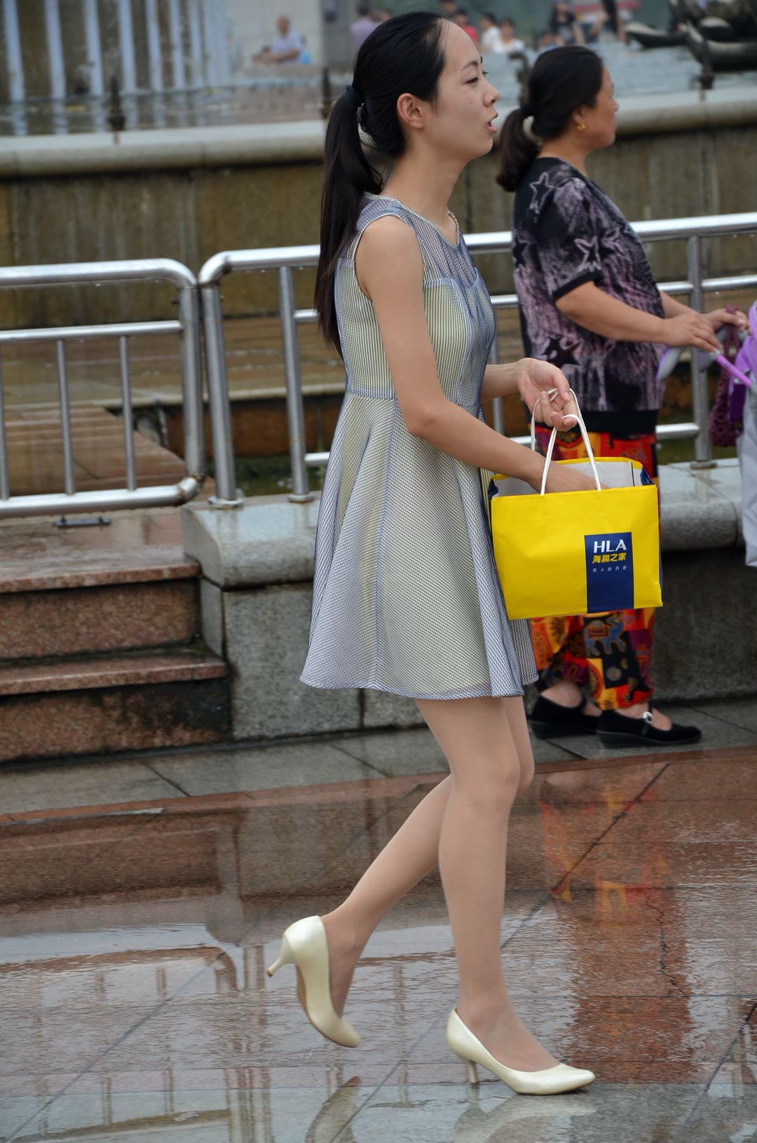 今日穿搭是连衣裙和白色高跟鞋高跟鞋控 美女丝袜高跟鞋