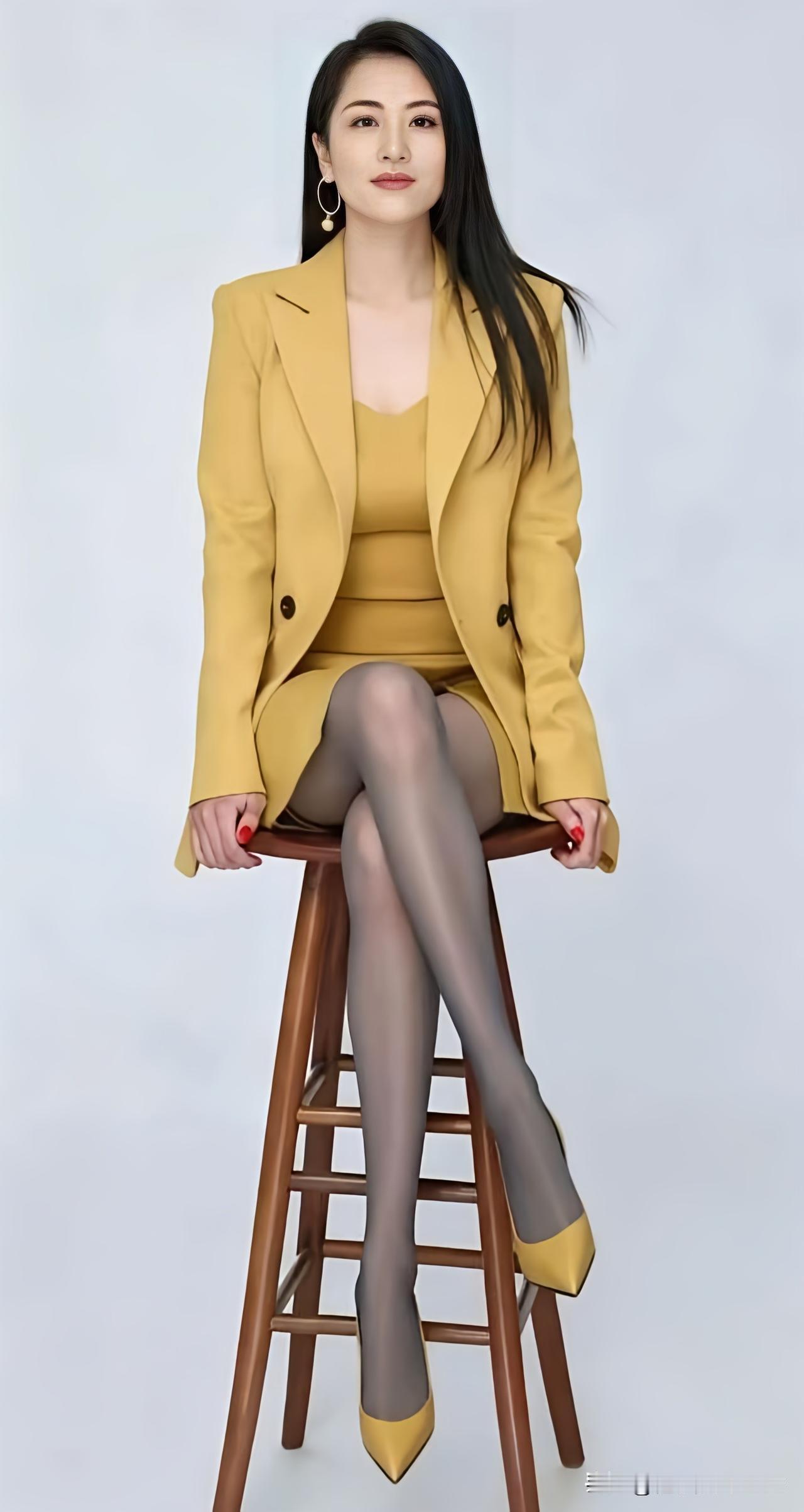 优雅职场风,黄色西装搭配高跟鞋,自信满满