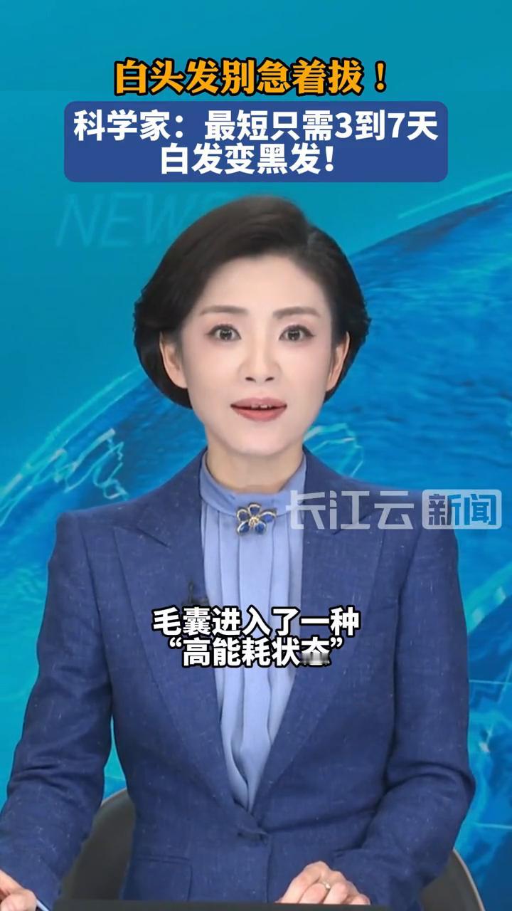 白头发别急着拔!科学家:最短只需3到7天,白发变黑发! 长江云新闻主播魏凌洁。