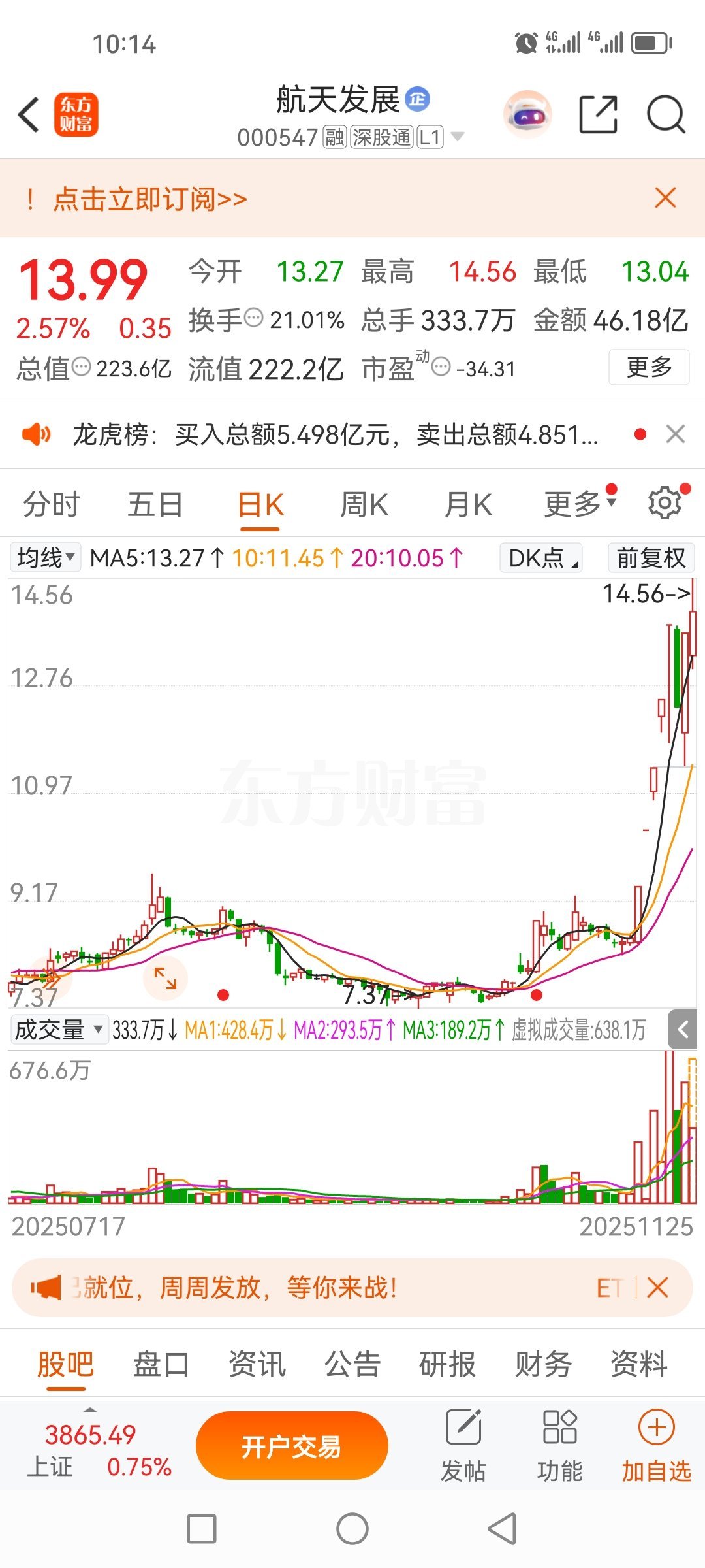 18日分享的航天发展000547,就像今天的天气一样,阳光明媚,艳阳高照!