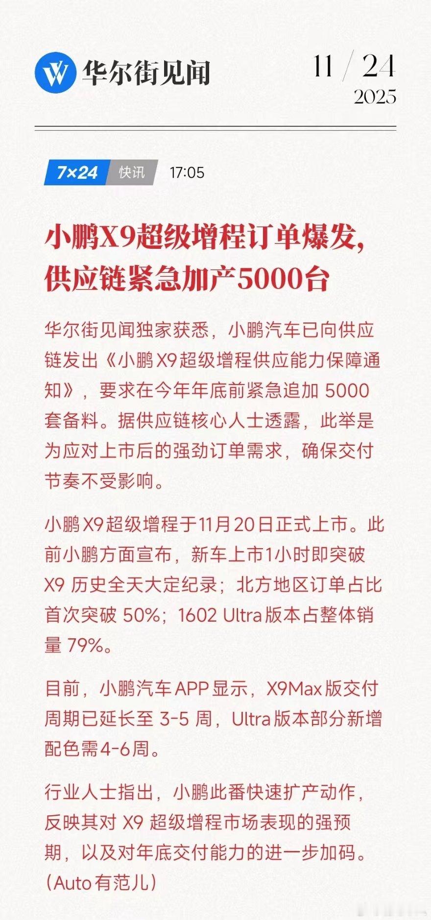 小鹏X9超级增程热销超预期,供应链紧急加产5000台。小鹏赶紧出超级增程的SUV