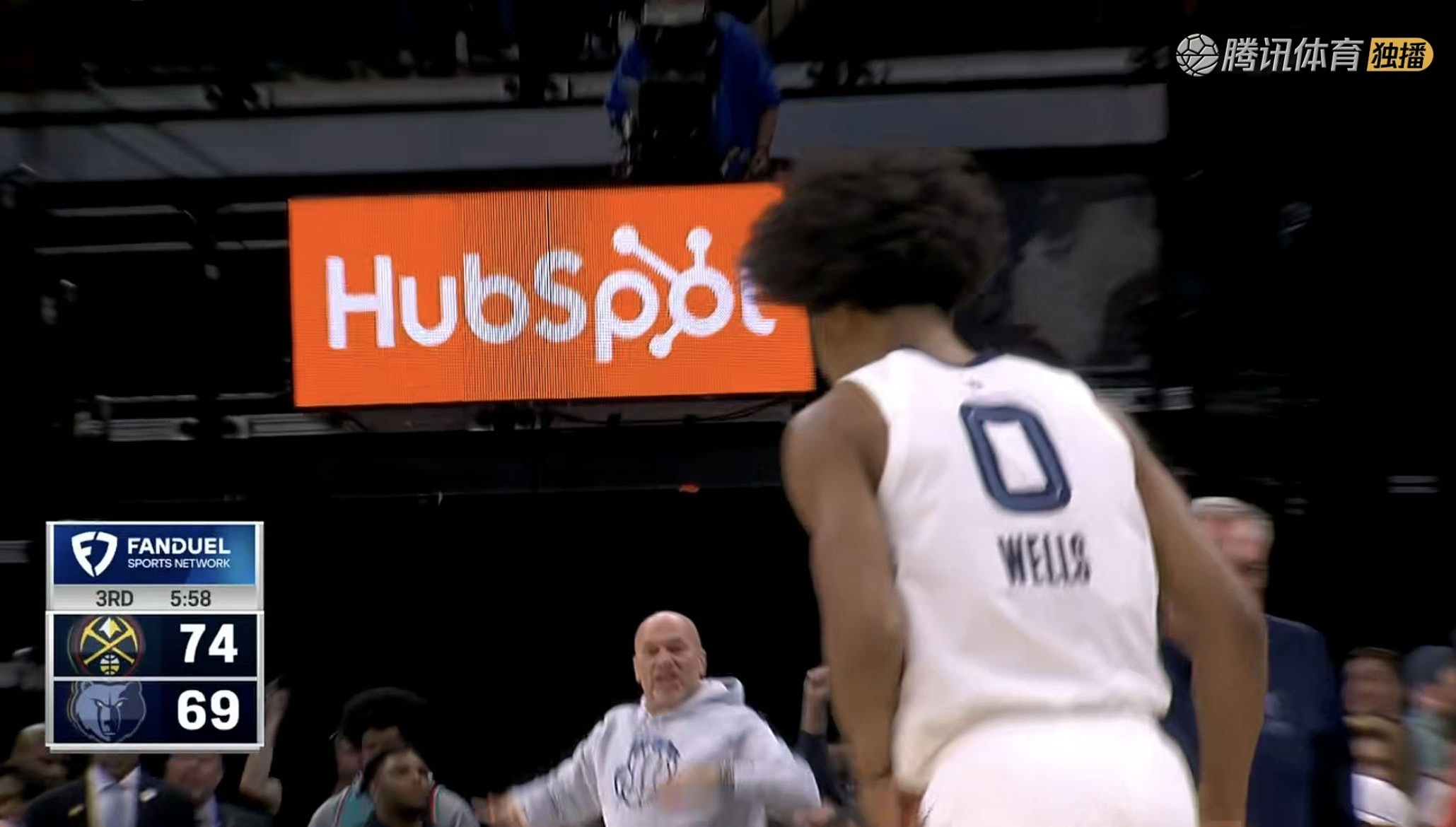 乔治单节4记三分,左上角比乔治还高兴。