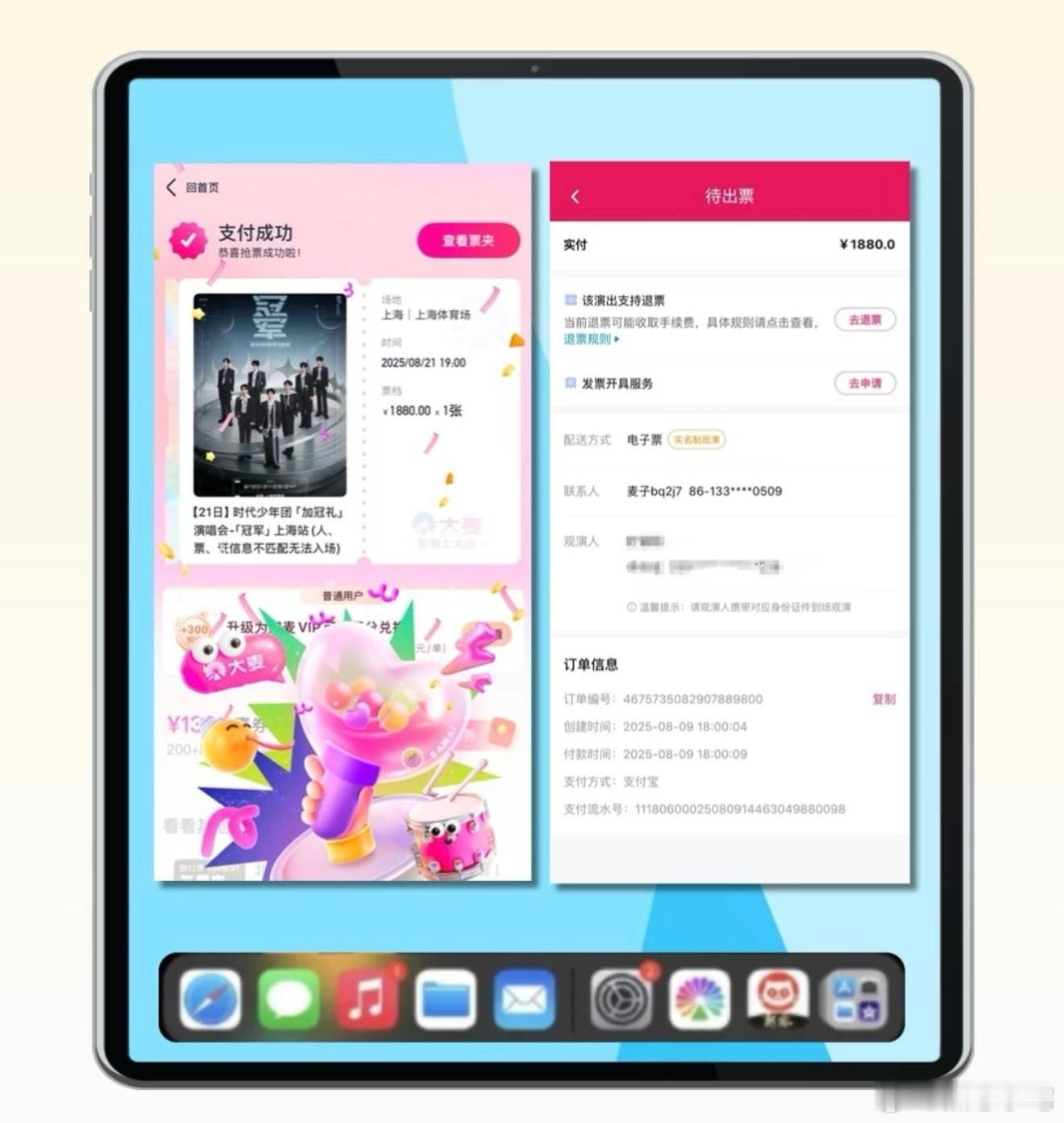 iPad台前调度抢票其实就是多端调度,平板可以跳过大麦直接进入支付宝支付,大家真