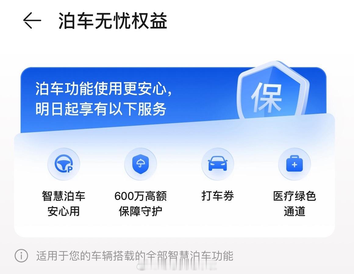 我不会是最后一个才知道的吧!这会已经有专门针对智能泊车辅助功能的保险了,关键这会还是消费赠送的!还有一个关键点:该保险覆盖智能泊车辅助全部功能。