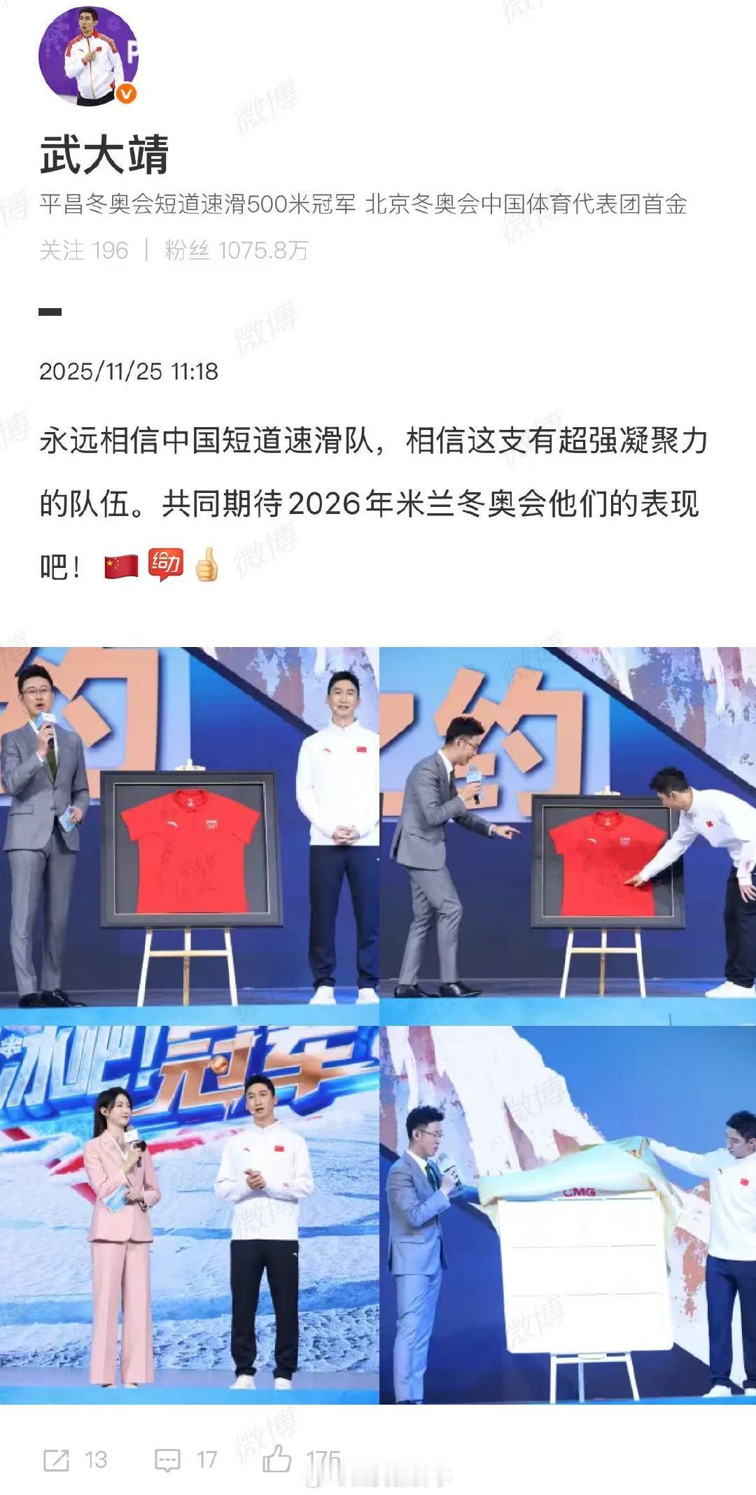 【】近日,中央广播电视总台举办2026米兰冬奥会融媒体传播服务方案发布活动。活动现场,当被问及米兰冬奥会中国短道速滑队能有几人登上奖牌榜时, 霸气回应:“全部!”这份底气,源于日复一日的艰苦训练和整个团队的强大实力。 刚刚, 发文称,永远相信中国短道速滑队,相信这支有超强凝聚力的队伍,共同期待2026年米兰冬奥会他们的表现吧!