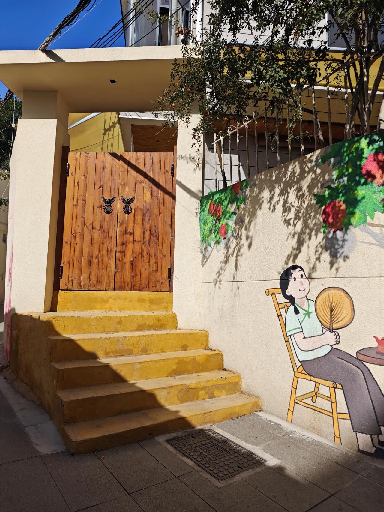 今天撞见了巷子里的小确幸——明晃晃的太阳把台阶晒成蜂蜜色,木门上的铜环都在发亮✨ 墙头上的石榴树把影子泼在壁画上,穿绿衫的姑娘摇着蒲扇,连风里都裹着懒洋洋的甜。 原来好天气是生活的滤镜,连普通的巷弄都变成了治愈系漫画🎨