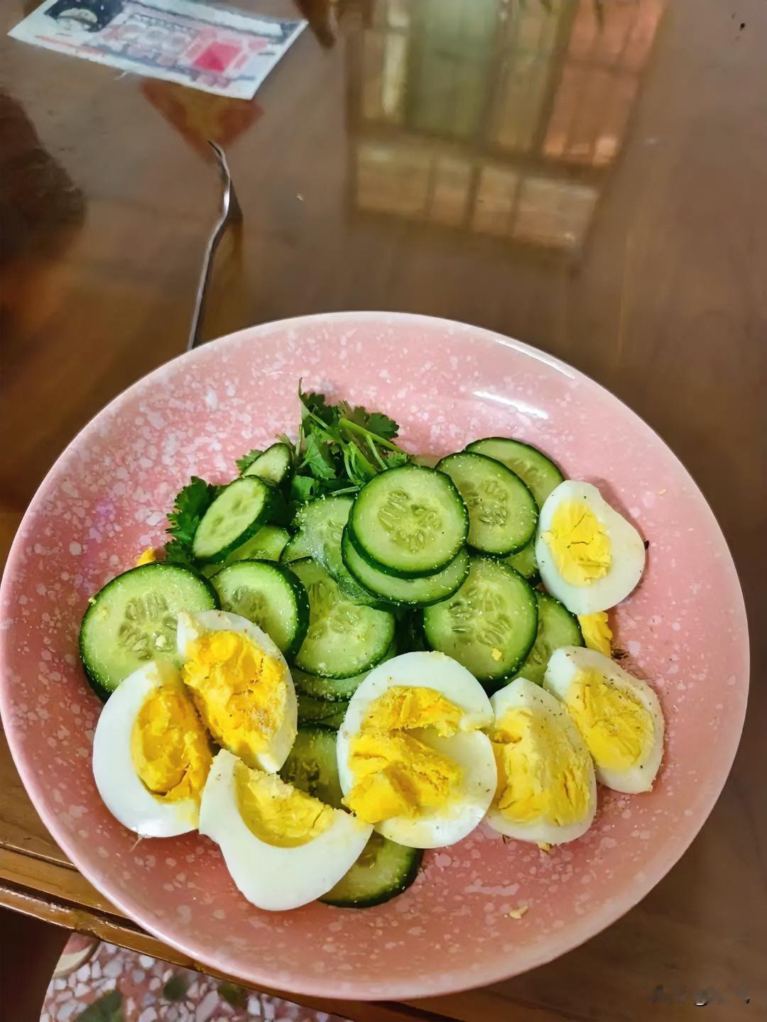 这盘拍黄瓜配水煮蛋刚端上桌,我眼睛都亮了——脆生生的黄瓜裹着淡淡的调味香,对半切的煮蛋黄澄澄的,看着就清爽。 这两天总想吃点清淡的,下班回家随手拍了根黄瓜,煮几个蛋凑一盘,没多复杂的工序,咬一口黄瓜脆得咯吱响,蛋香混着菜味,顺口得不行。 忙活一天,就靠这口简单的家常味熨帖心窝子,普通日子里的舒服,不就是这么一盘清爽菜给的嘛~