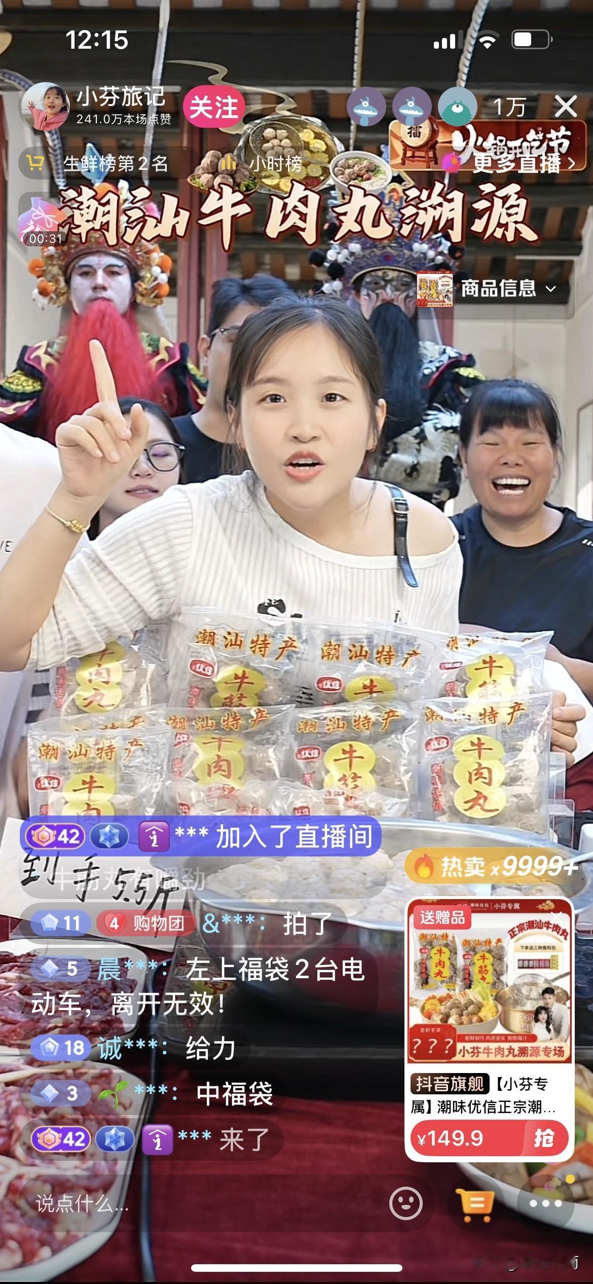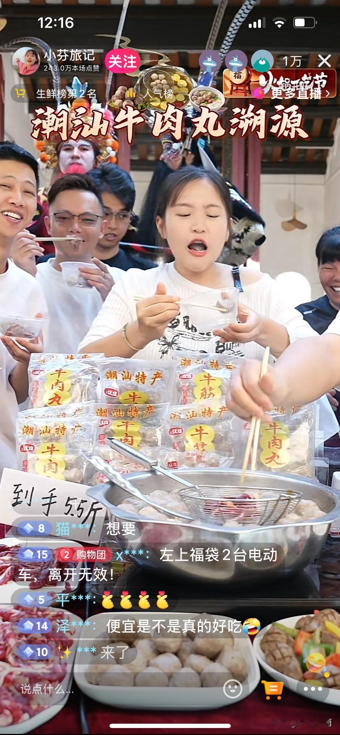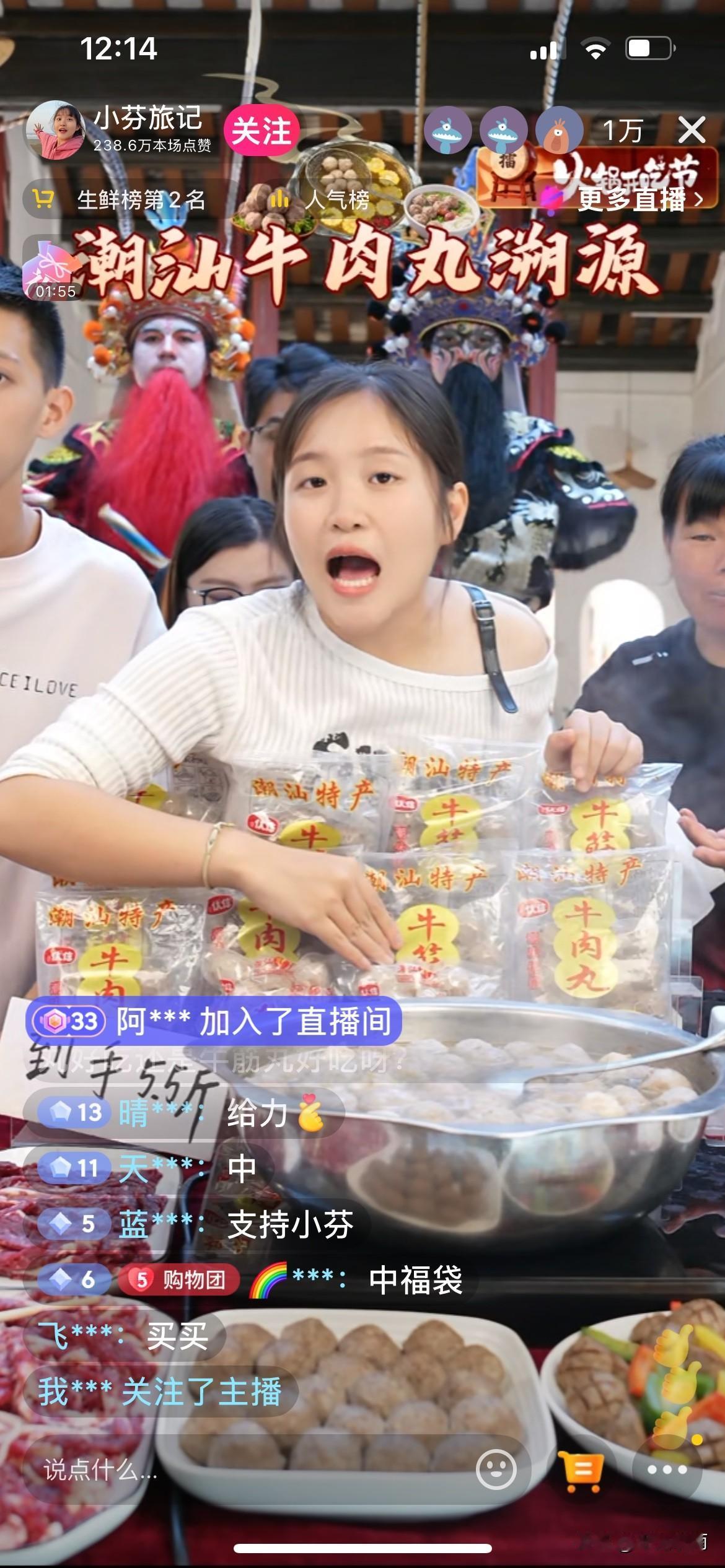 小芬正在售卖家乡潮汕牛肉丸,直播间异常火爆,瞬间就卖出了上万单! 平常一斤牛肉丸要五十多元,小芬在直播间发放福利,二十几元就能买到。商家亏得那叫一个惨! 小芬的哥嫂再度站台,力挺自己的妹妹,家人真是太给力了。 学长前来提亲,依照风俗得给四五万彩礼,小芬为了不给学长家增添压力,自己挣彩礼钱,学长真是前世拯救了银河系。 一场直播下来,粉丝十分捧场,小芬的嫁妆钱、彩礼钱全都有着落了! 在地球村的成员里,小芬堪称最为成功的,甚至已经超越舅舅海哥了!@小芬旅记 潮汕家牛肉丸 汕头牛肉丸店
