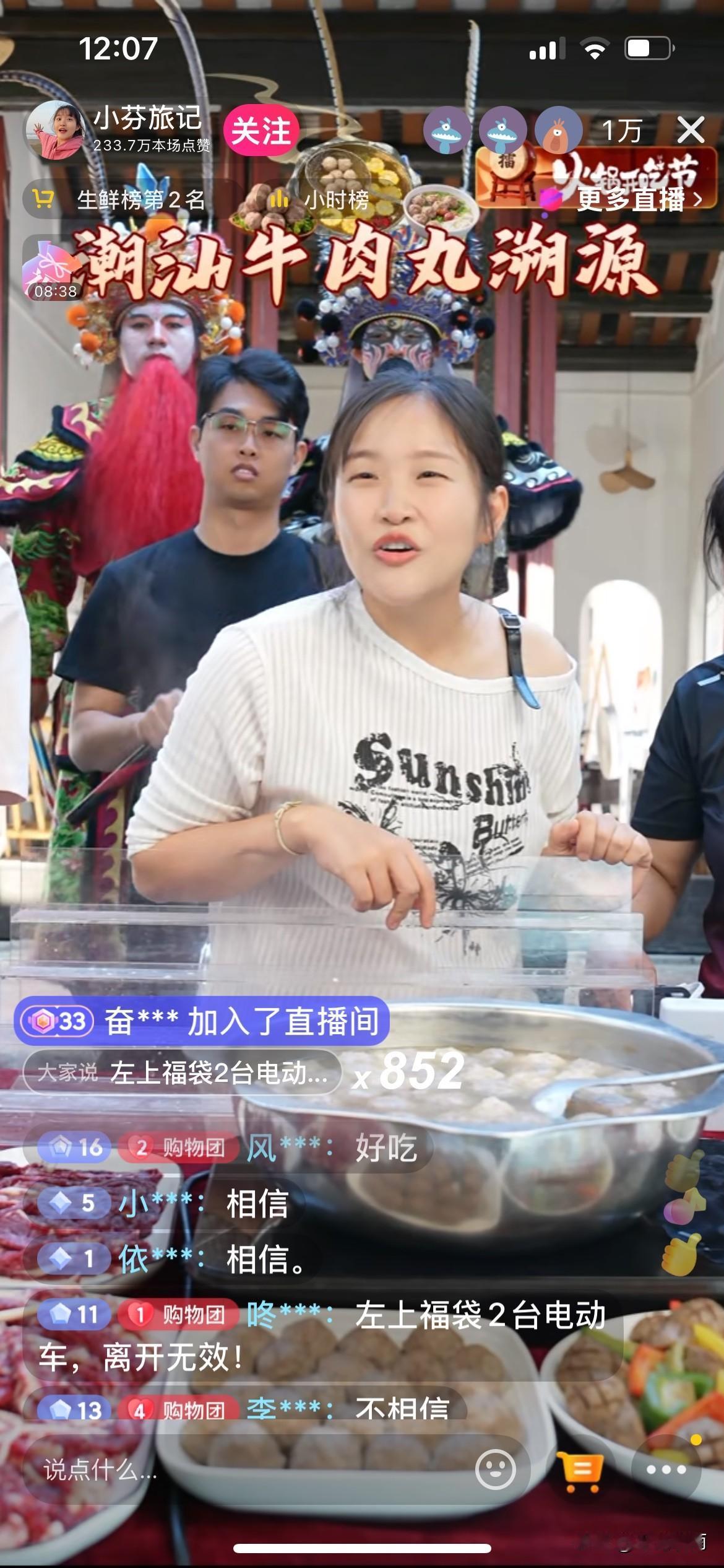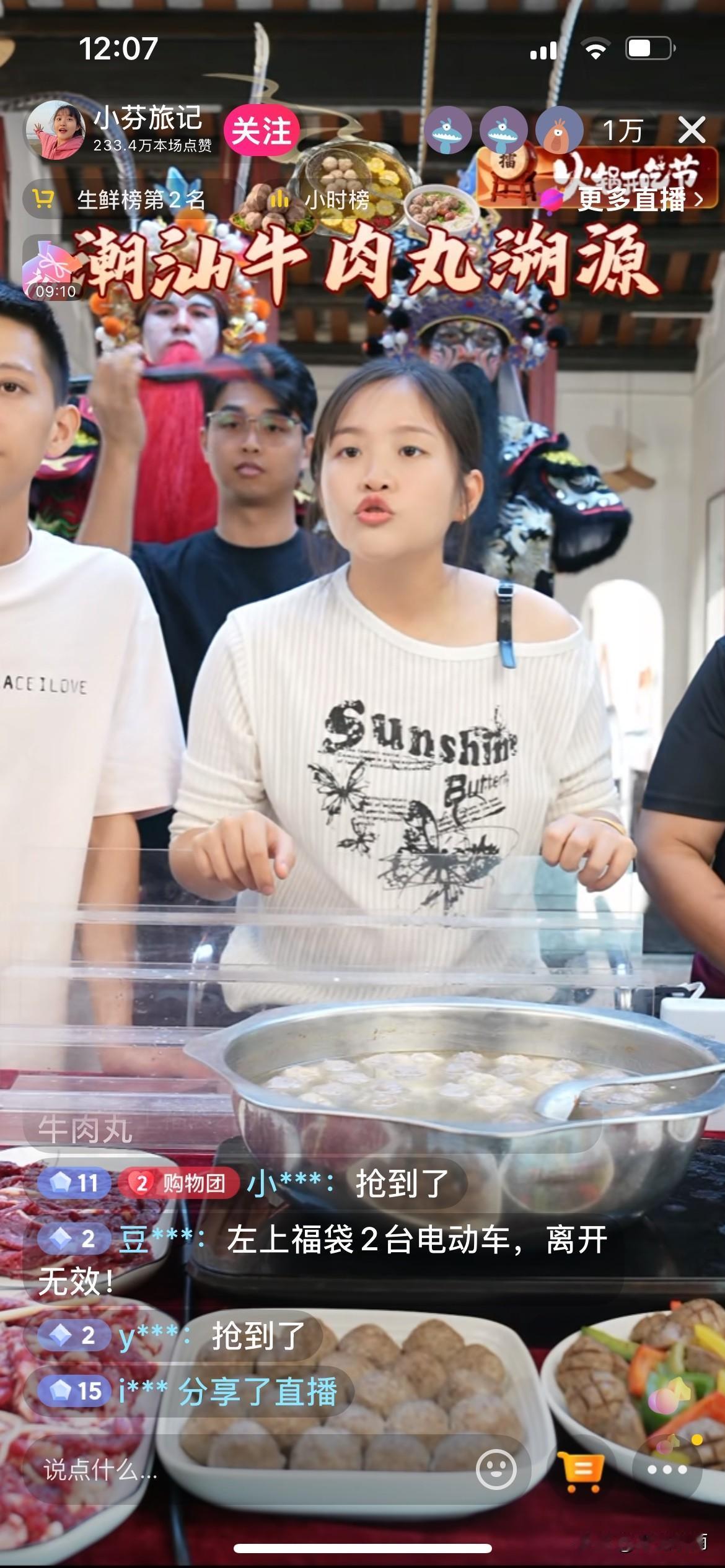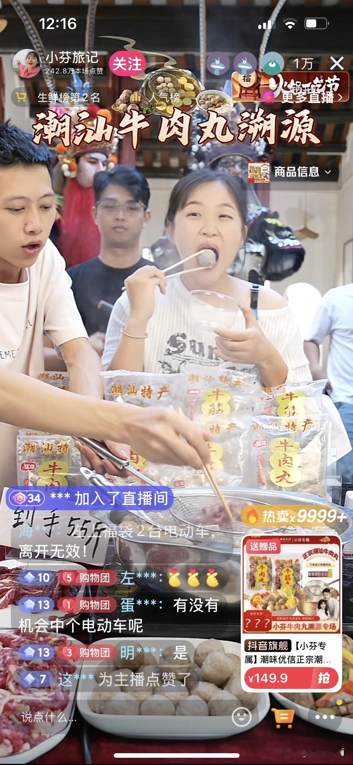 小芬正在售卖家乡潮汕牛肉丸,直播间异常火爆,瞬间就卖出了上万单! 平常一斤牛肉丸要五十多元,小芬在直播间发放福利,二十几元就能买到。商家亏得那叫一个惨! 小芬的哥嫂再度站台,力挺自己的妹妹,家人真是太给力了。 学长前来提亲,依照风俗得给四五万彩礼,小芬为了不给学长家增添压力,自己挣彩礼钱,学长真是前世拯救了银河系。 一场直播下来,粉丝十分捧场,小芬的嫁妆钱、彩礼钱全都有着落了! 在地球村的成员里,小芬堪称最为成功的,甚至已经超越舅舅海哥了!@小芬旅记 潮汕家牛肉丸 汕头牛肉丸店