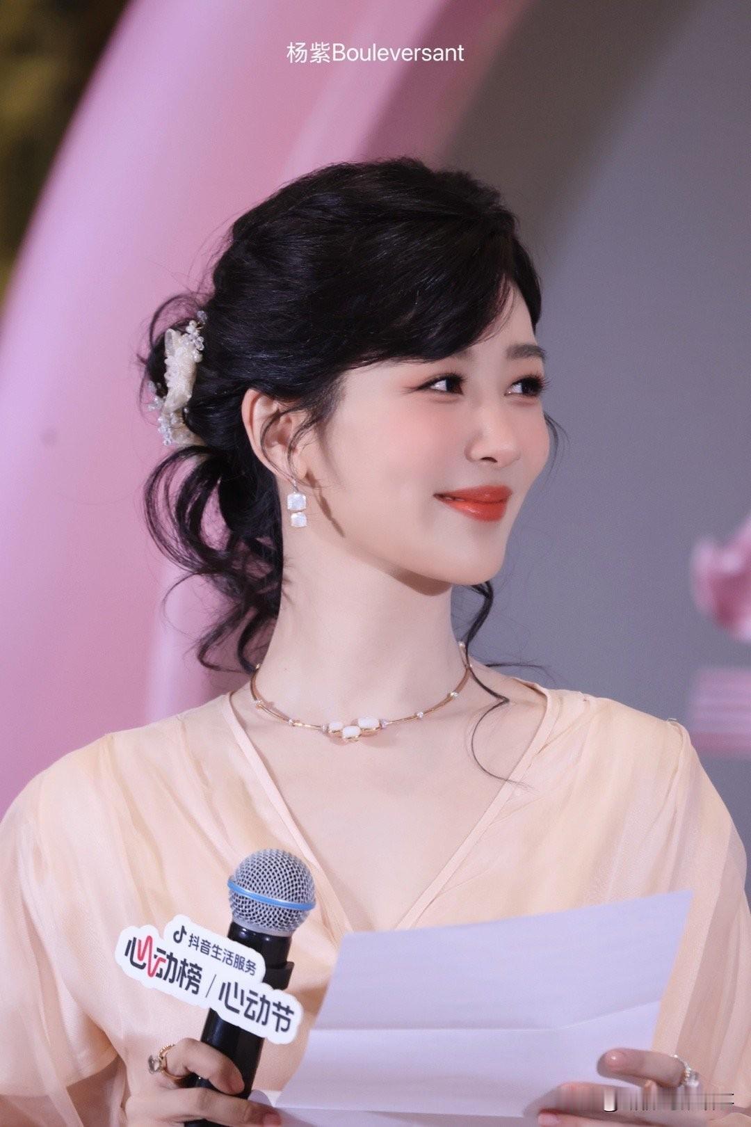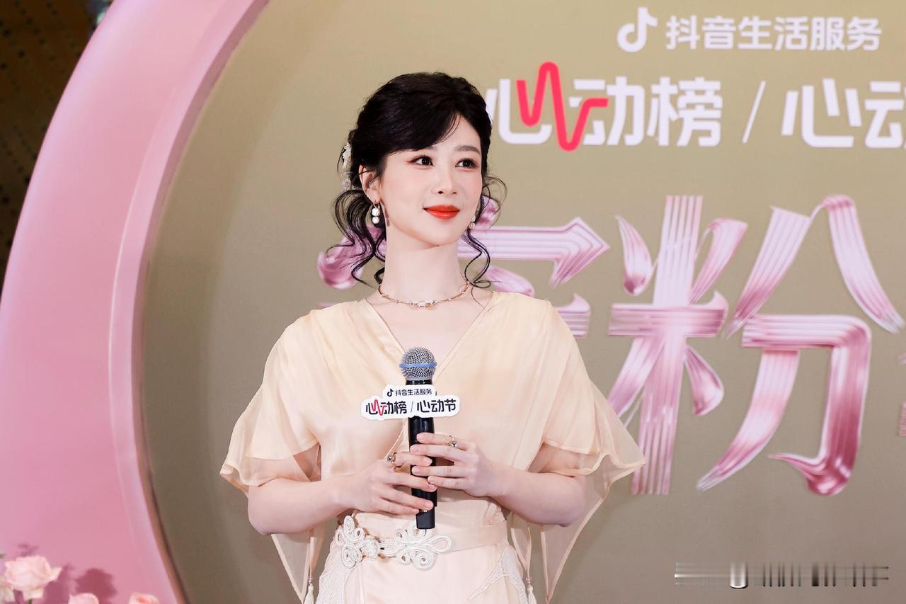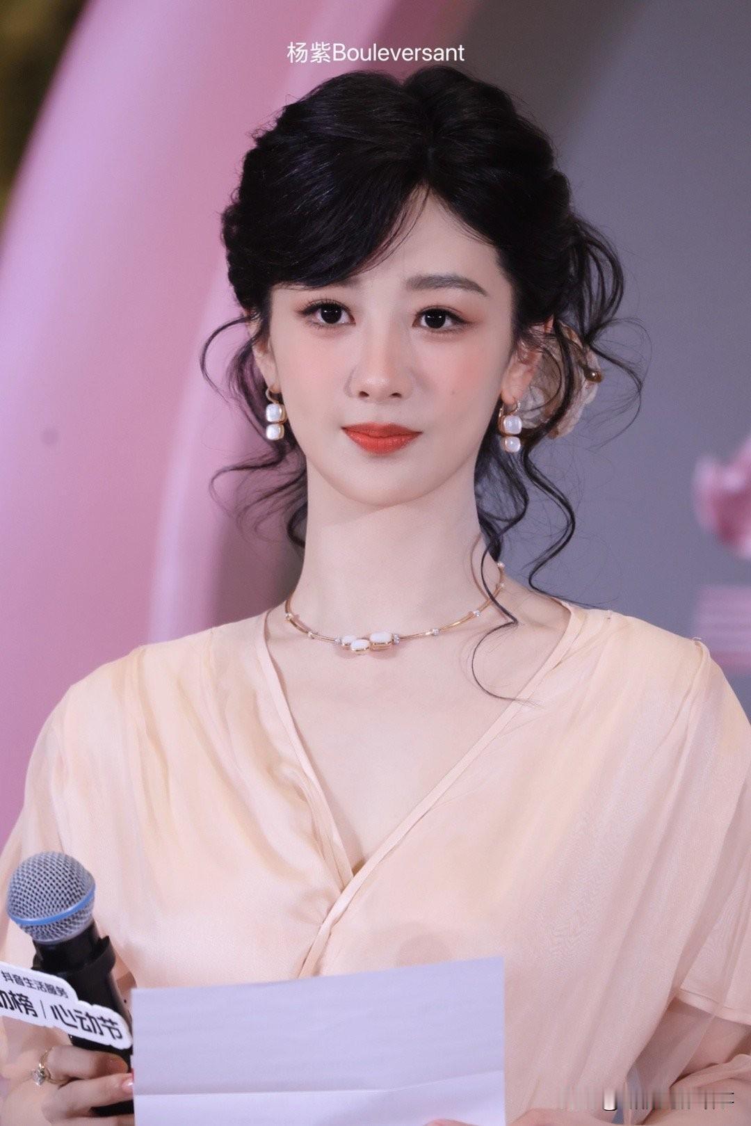 杨紫:柔光里的优雅,是明媚与从容的共生 浅杏色纱裙裹着柔雾般的温柔,珍珠耳饰坠着细碎的光——杨紫这组造型,把“优雅”揉成了具象的暖。 她抬眼是明媚笑意,垂眸时又漫出松弛的从容,发间的缎面花饰衬着复古氛围,像老电影里踩着光斑走来的女主角。连裙摆的褶皱都裹着灵动,是柔光里恰好的舒展。