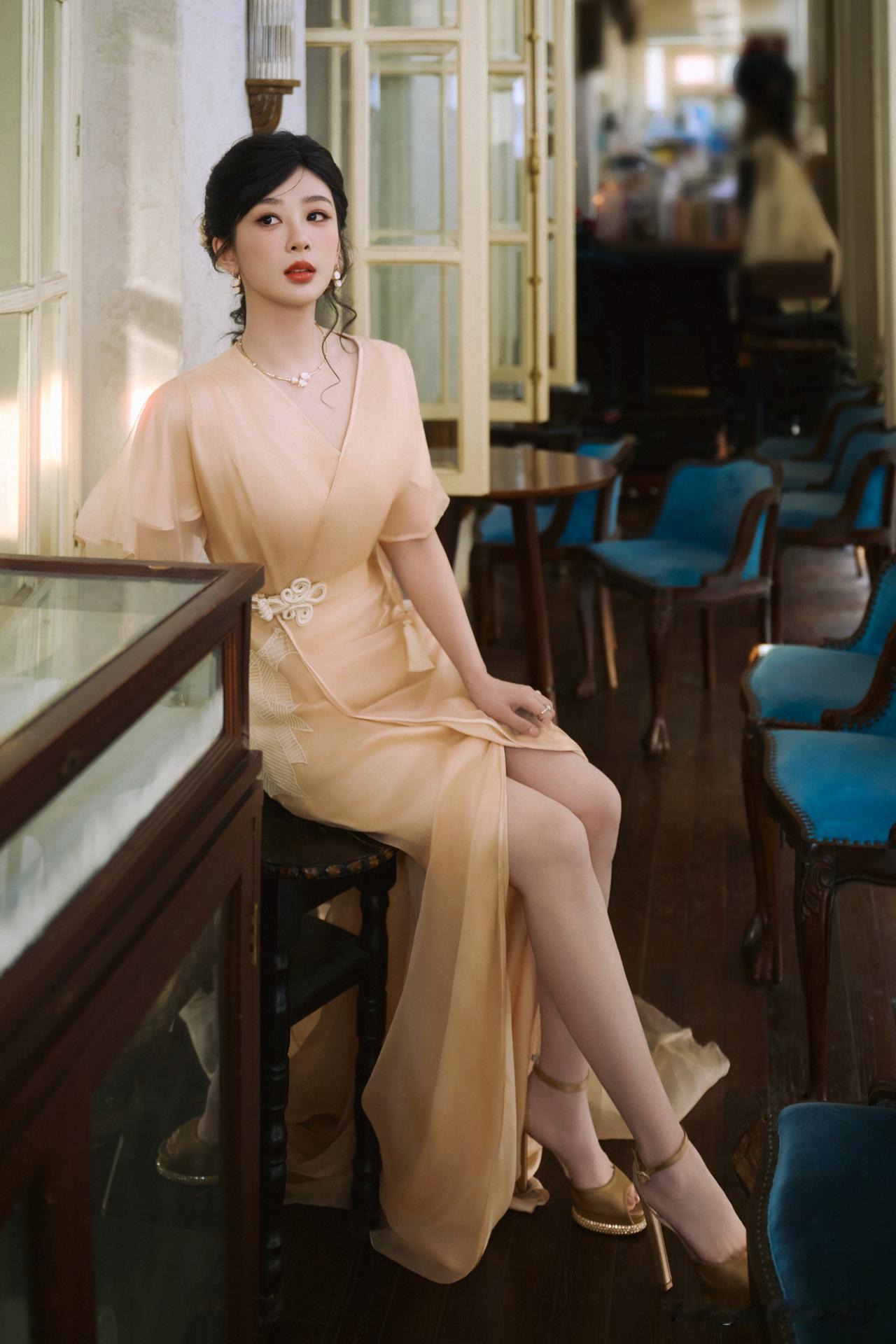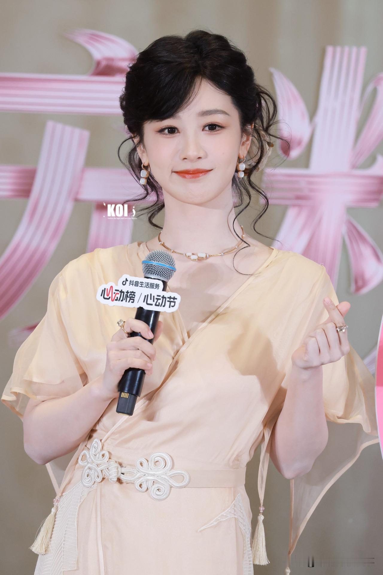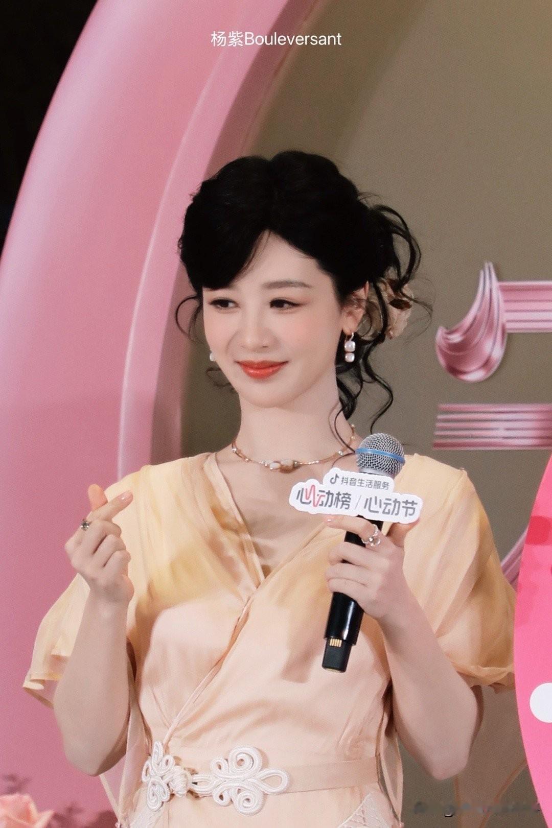 杨紫:柔光里的优雅,是明媚与从容的共生 浅杏色纱裙裹着柔雾般的温柔,珍珠耳饰坠着细碎的光——杨紫这组造型,把“优雅”揉成了具象的暖。 她抬眼是明媚笑意,垂眸时又漫出松弛的从容,发间的缎面花饰衬着复古氛围,像老电影里踩着光斑走来的女主角。连裙摆的褶皱都裹着灵动,是柔光里恰好的舒展。