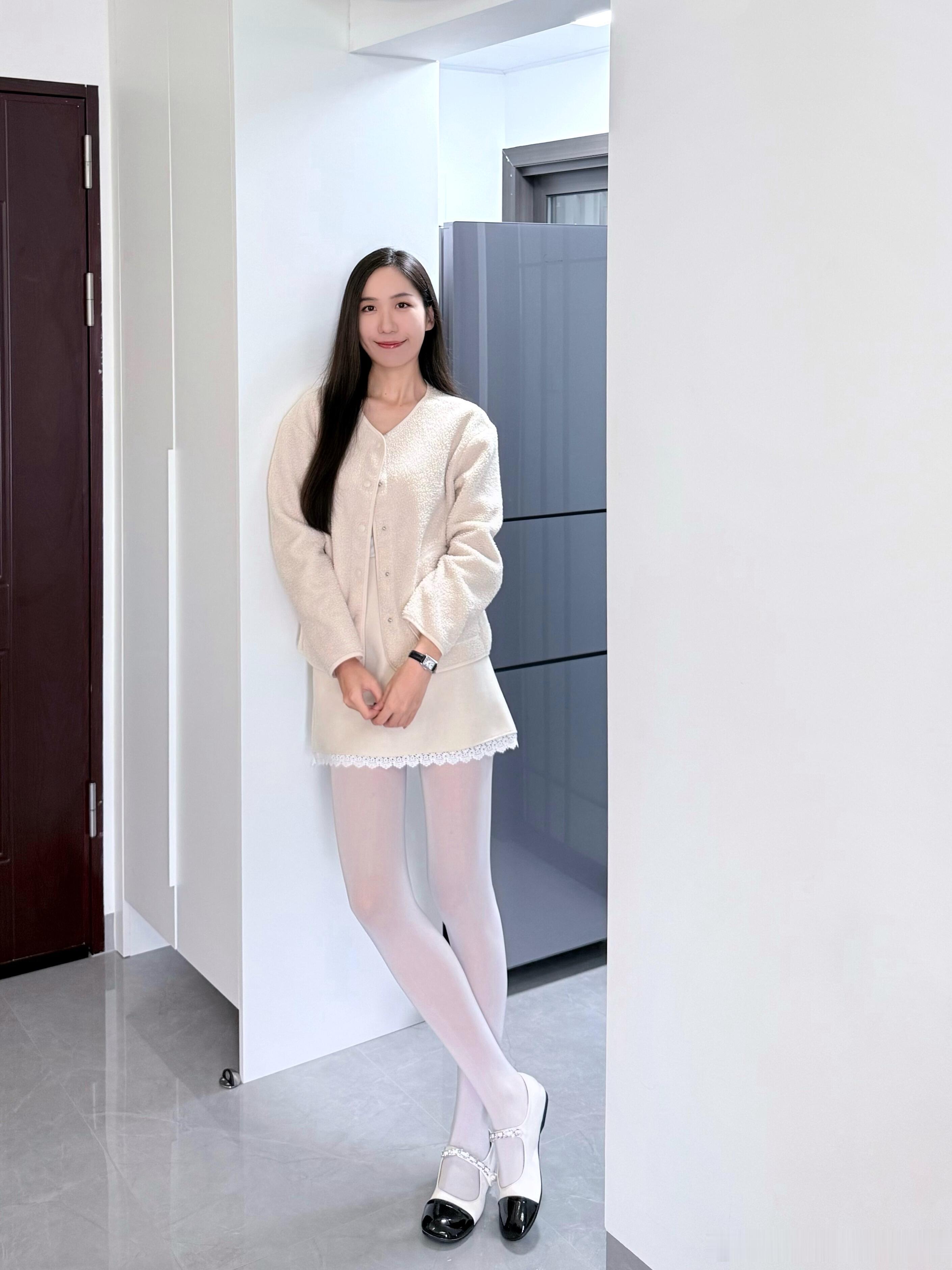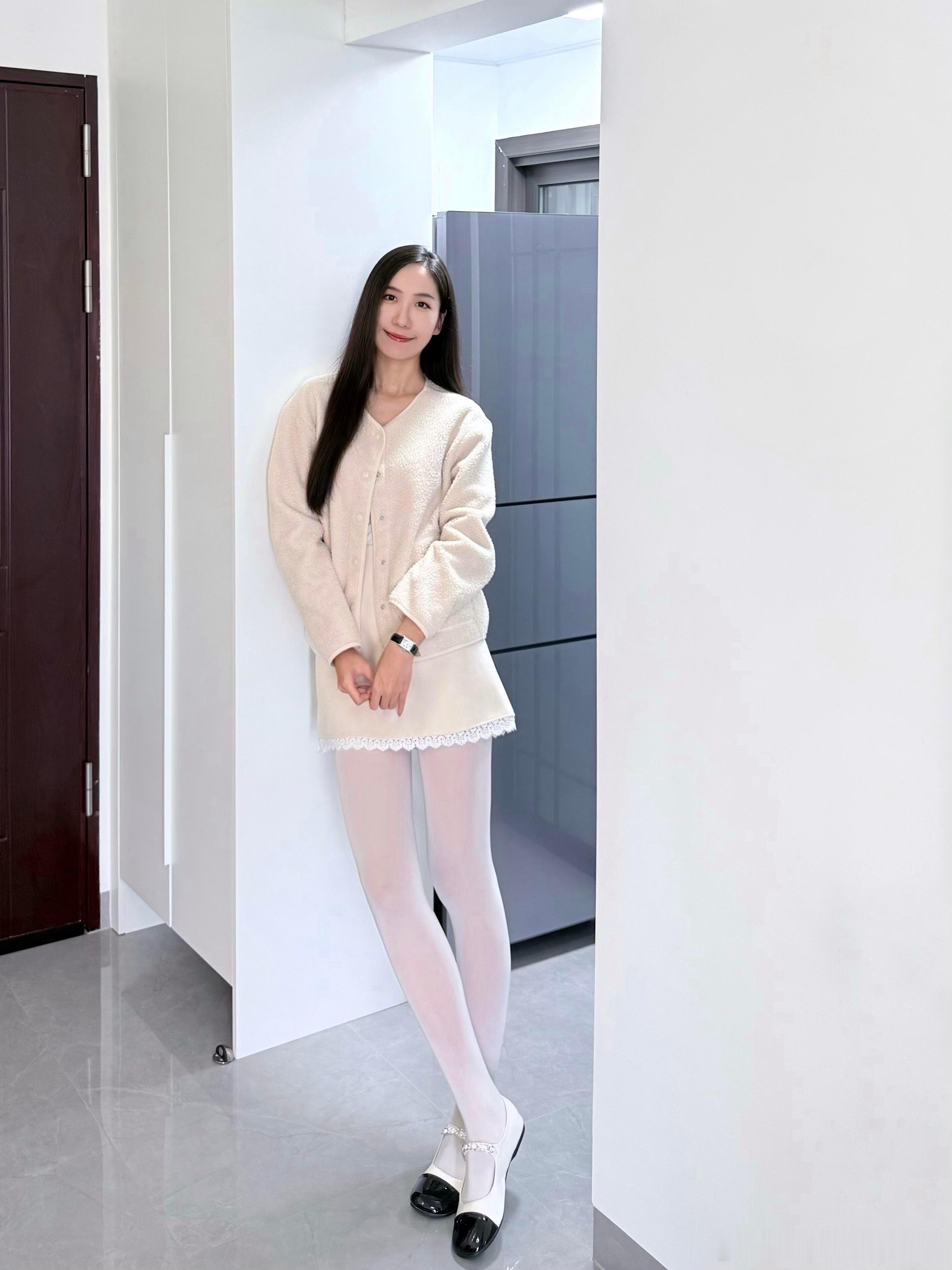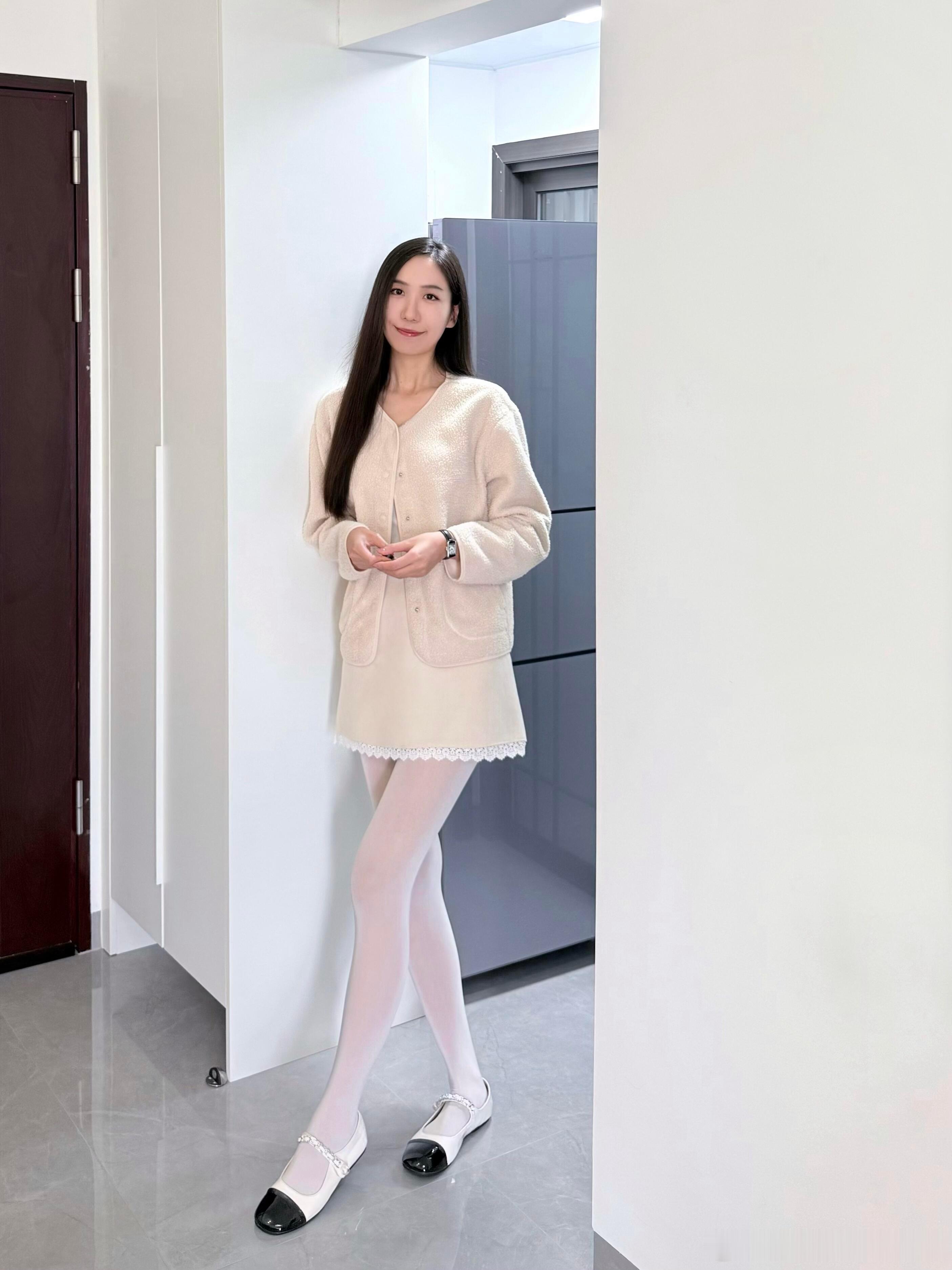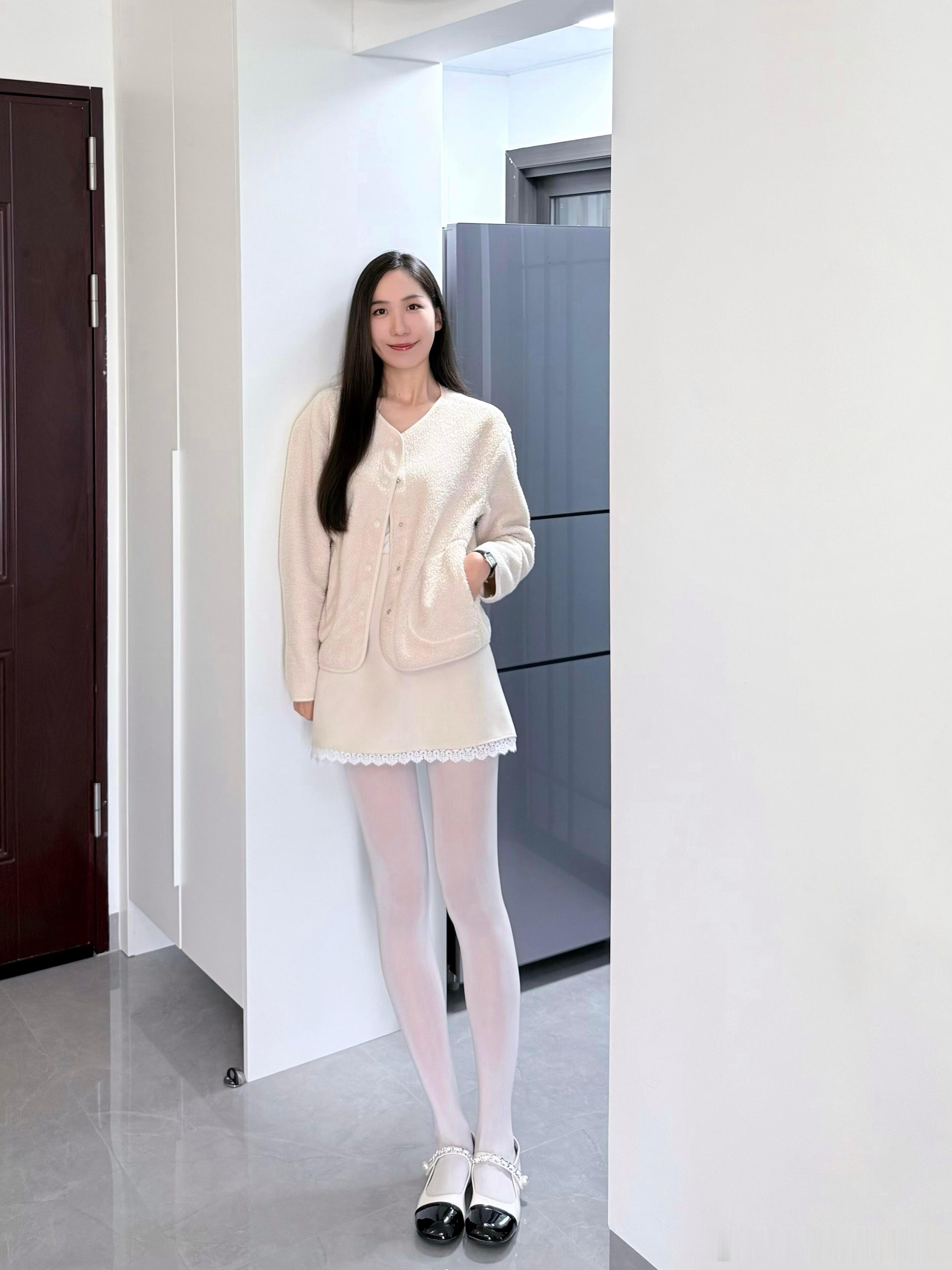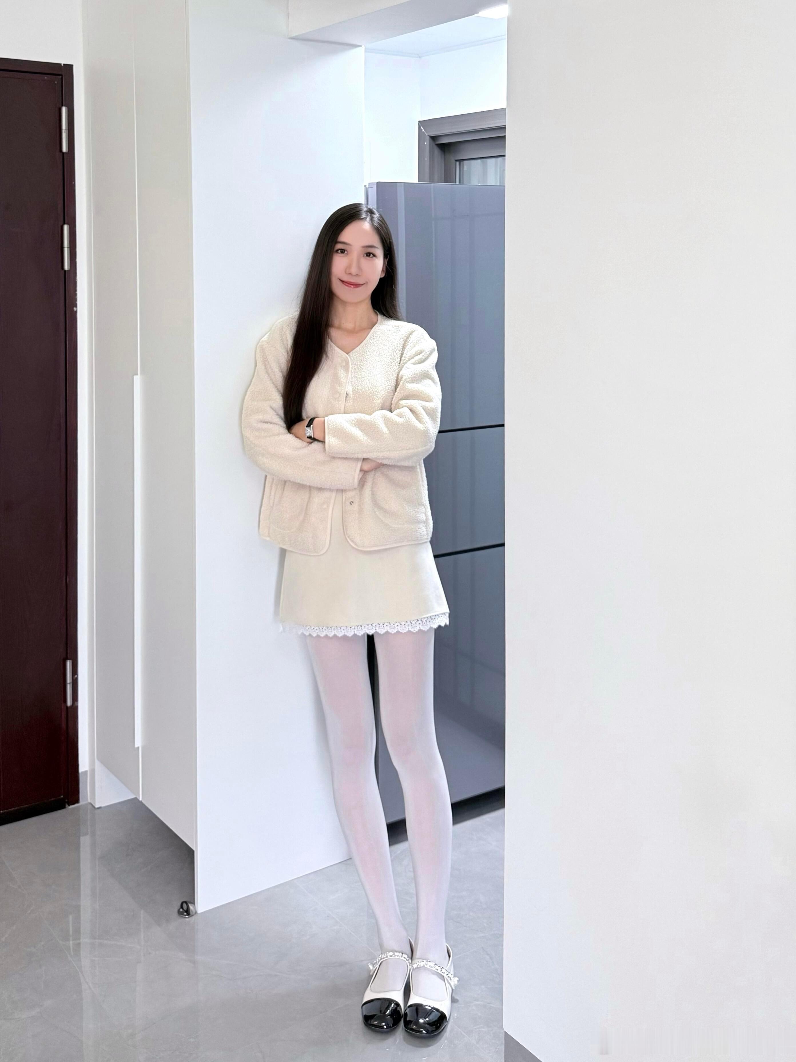 175|100 方扣平底鞋与深色丝袜,秋冬的毛绒绒穿搭,