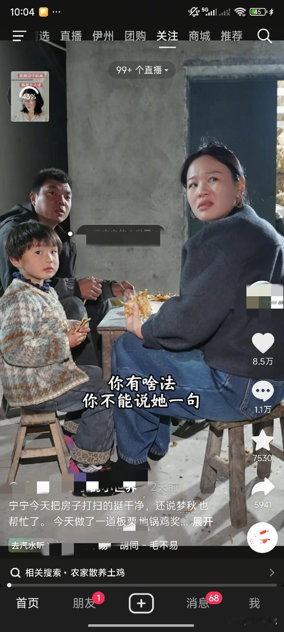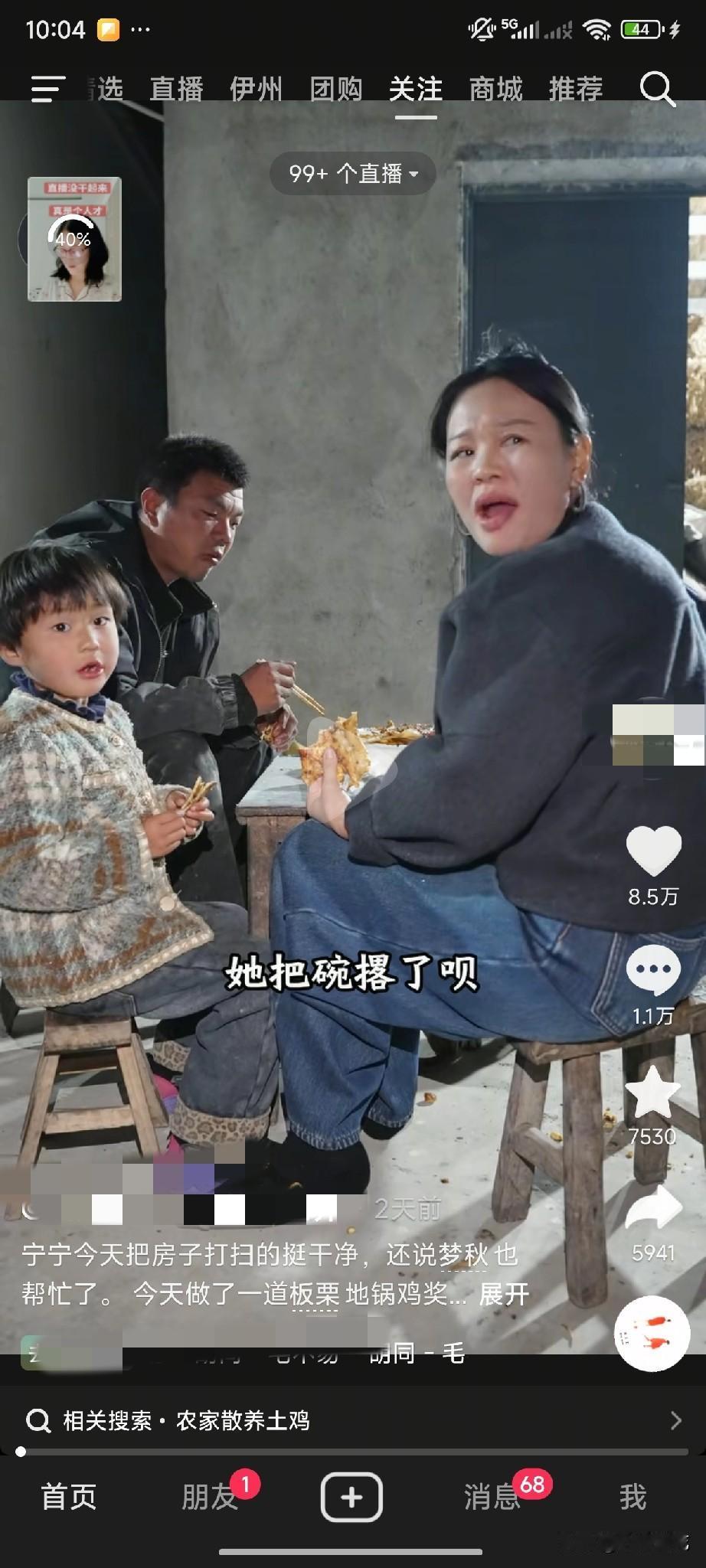 大清早我掉进了屎壳郎里了! 大清早刷到屎秋摔碗,真想给她两个大饼。 梦秋这祖宗脾气可真大,姐姐周敏把饭做好,傻宁给傻婆娘端到屋里,转身和姐姐及女儿妙妙一起吃饭,突然梦秋屋里传来“哐当”的声音,周敏转头说:她把碗撂了呗!宁宁说:你有啥法,你不能说她一句。 傻秋都知道恃宠而骄,知道自己能挣钱,知道拿捏这些正常人,一个傻子,居然可以拿捏三个正常人,梦秋她已经活出了我们正常女人的天花板,全网最大的俩网红就是梦秋和泥娃,这俩人有个共同点,就是智力有问题,但绝对会拿捏男人,也会作。 梦秋这是在想念心上人了吗?摔碗发泄?