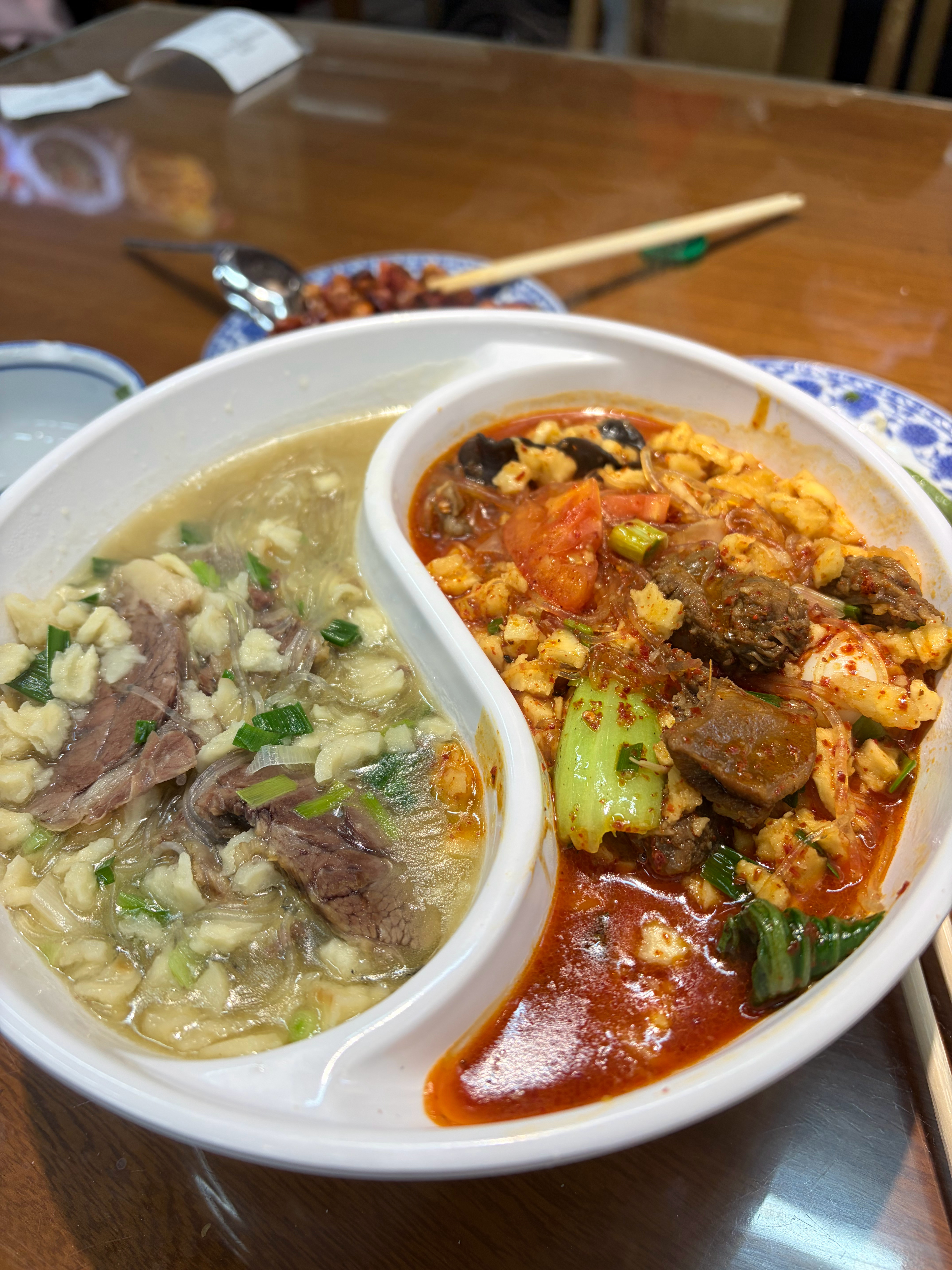 泡馍讲究自己掰,我来示范下就这么大最好吃,太小了容易哝太大不容易入味。这是鸳鸯泡馍😋