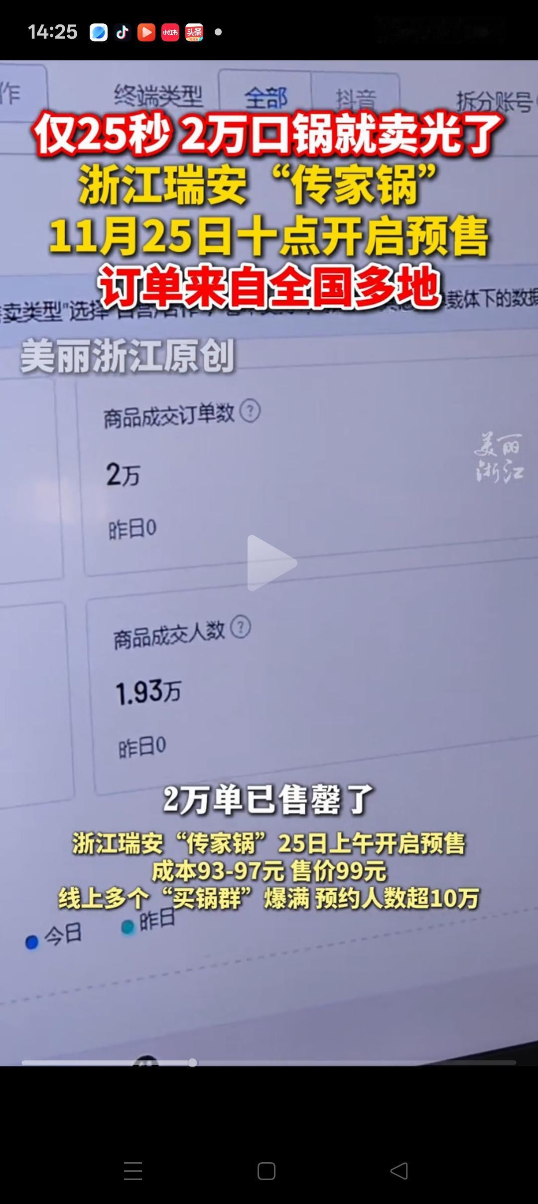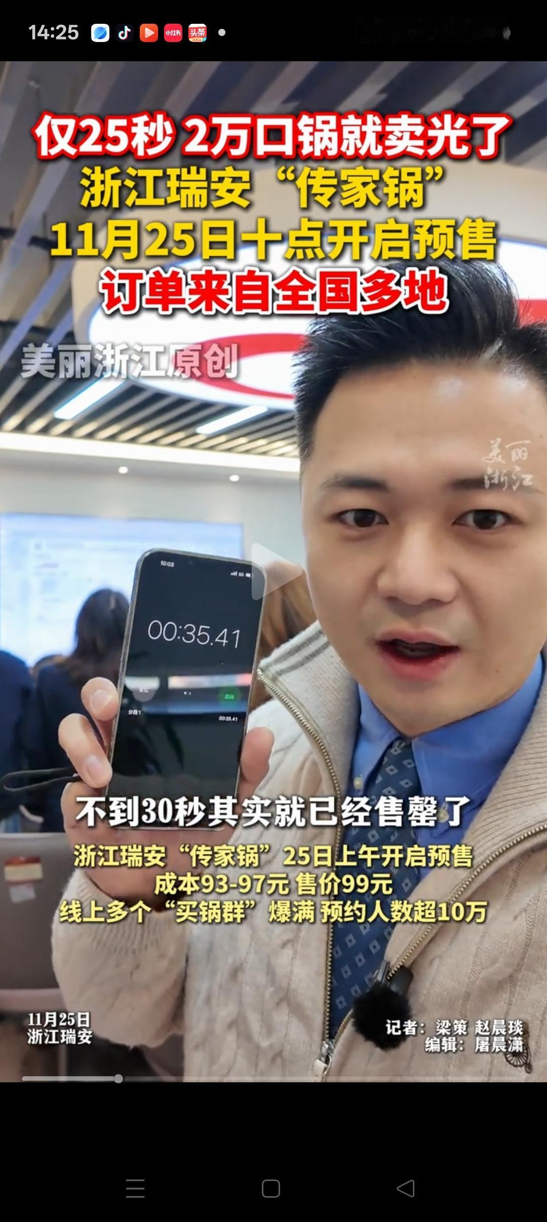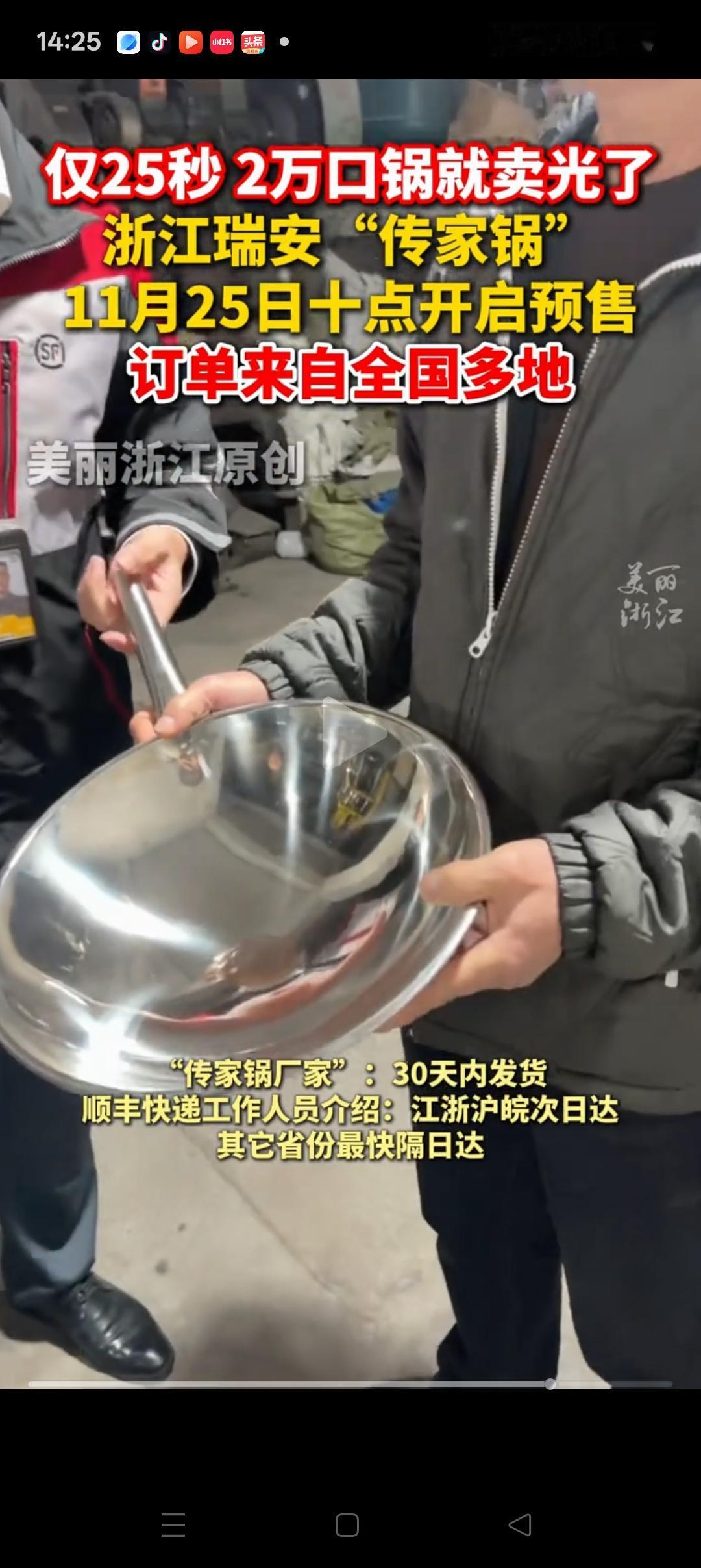 抢不到,根本抢不到啊![捂脸] 万万没想到,瑞安传家锅预售的20000个仅30秒就卖光了。 本以为老板公布99元的定价后会劝退很多人,但没想到很多网友进都没进去就没了。 根据线上多个“买锅群”预约的数据来看,有超100000人预约,显然这20000个锅还是太少。 但个人觉得,不管是企业or个人做生意,最起码要有20%的利润,瑞安传家锅老板才几块钱的利润,也就是不到5%,真的太便宜了! 瑞安传家锅的营销也是我见过最成功的营销广告了,不管是营销,场景,还是老板立的人设,都堪称完美,佩服[赞][赞]