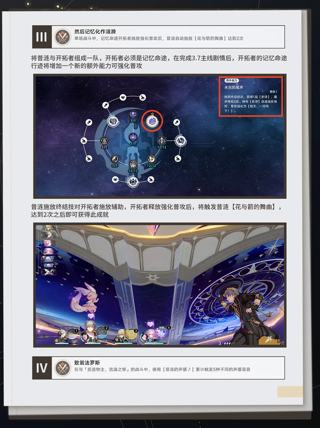 然后记忆化作涟漪:单场战斗中,记忆命途开拓者施放强化普攻后,昔涟自动施放【花与箭的舞曲】达到2次