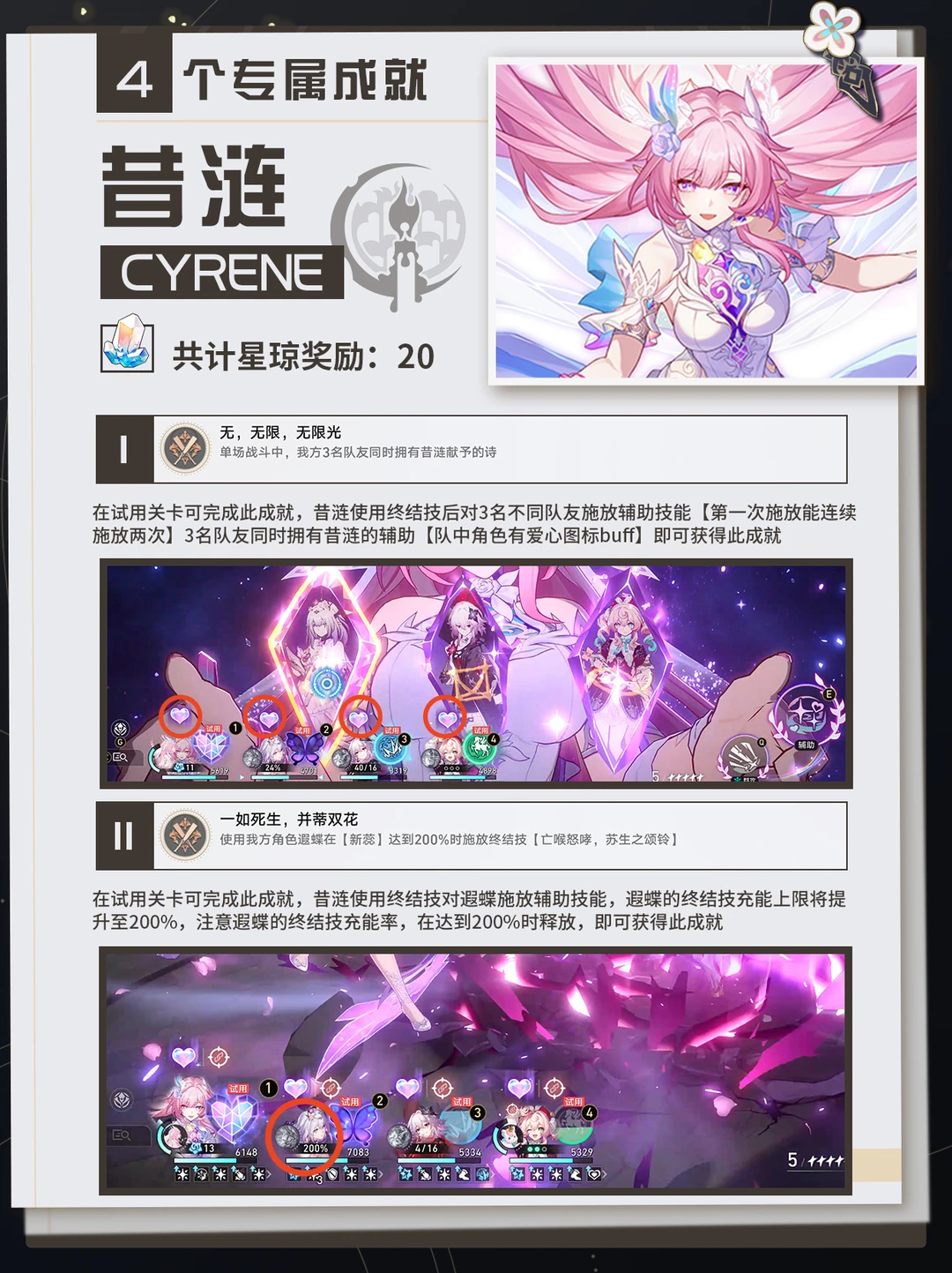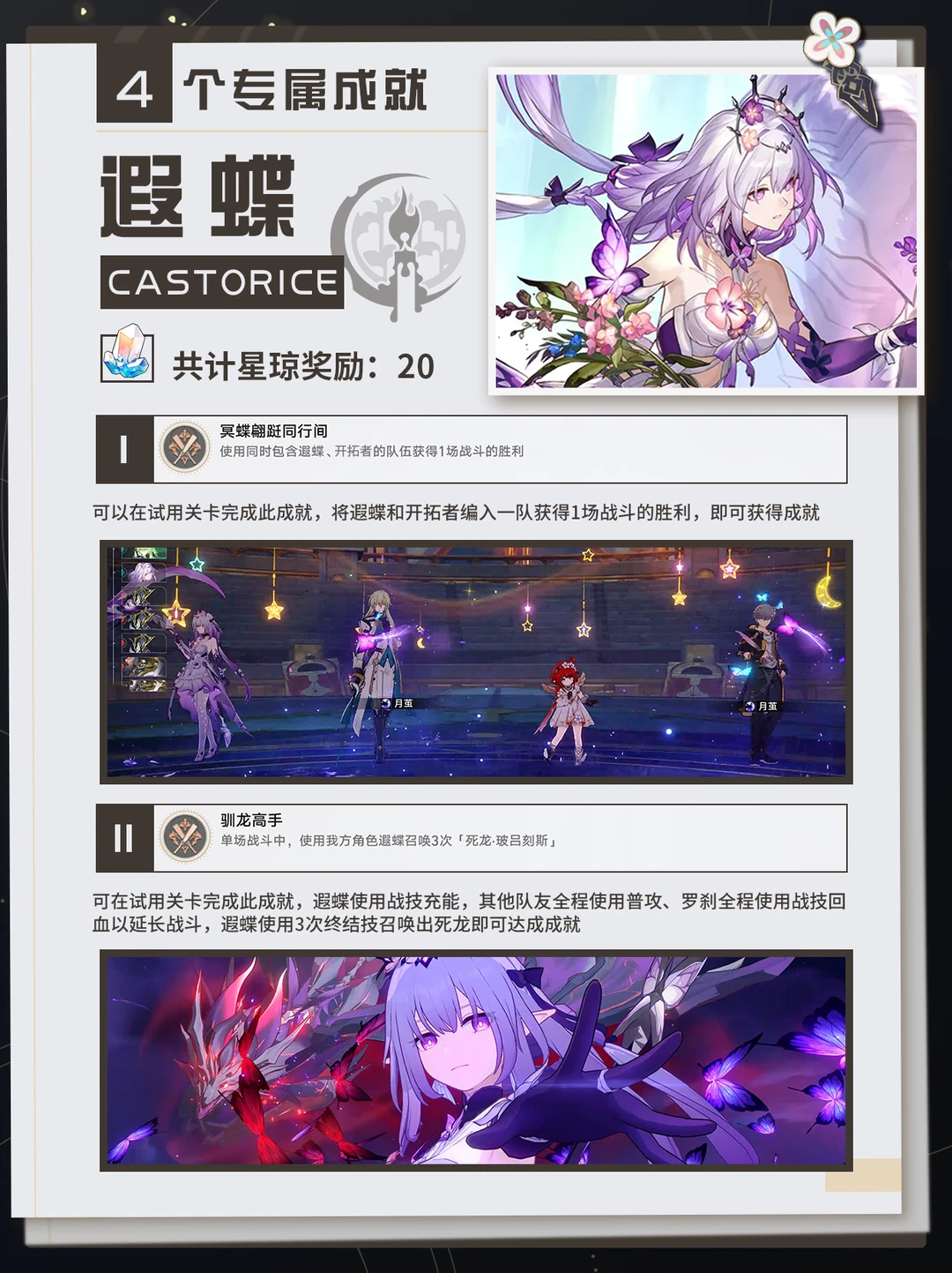 冥蝶翩跹同行间:使用同时包含遐蝶、开拓者的队伍获得1场战斗的胜利