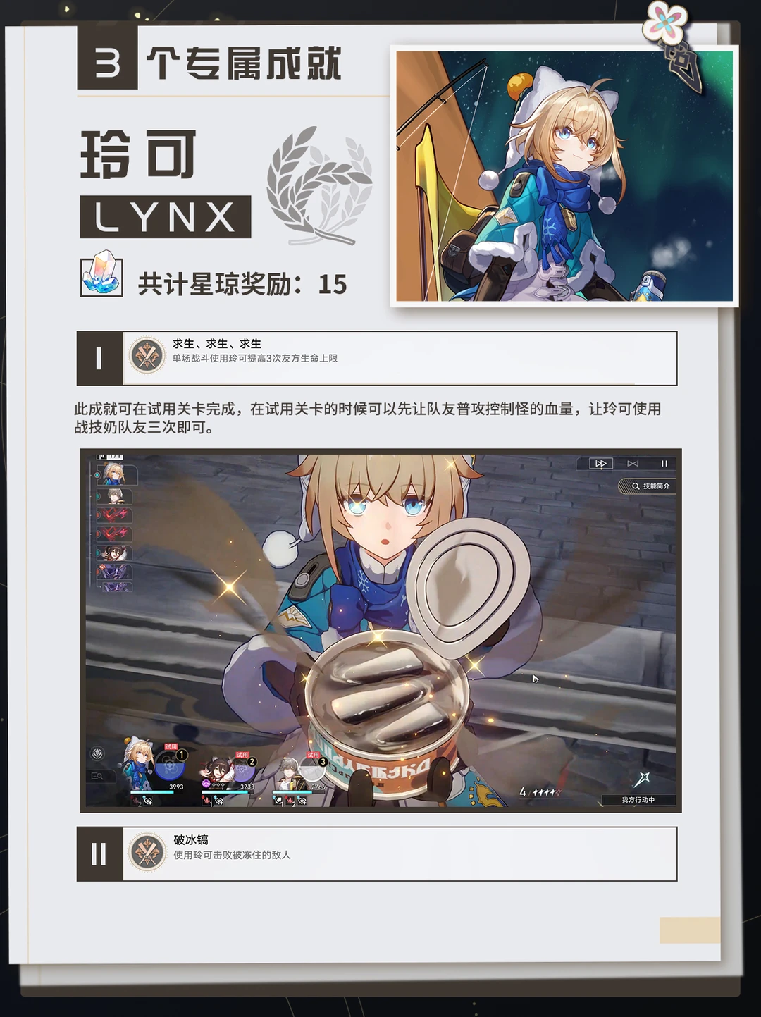 Tribbie kill:单场战斗中,我方角色缇宝使用单次「普攻」同时消灭3个敌人